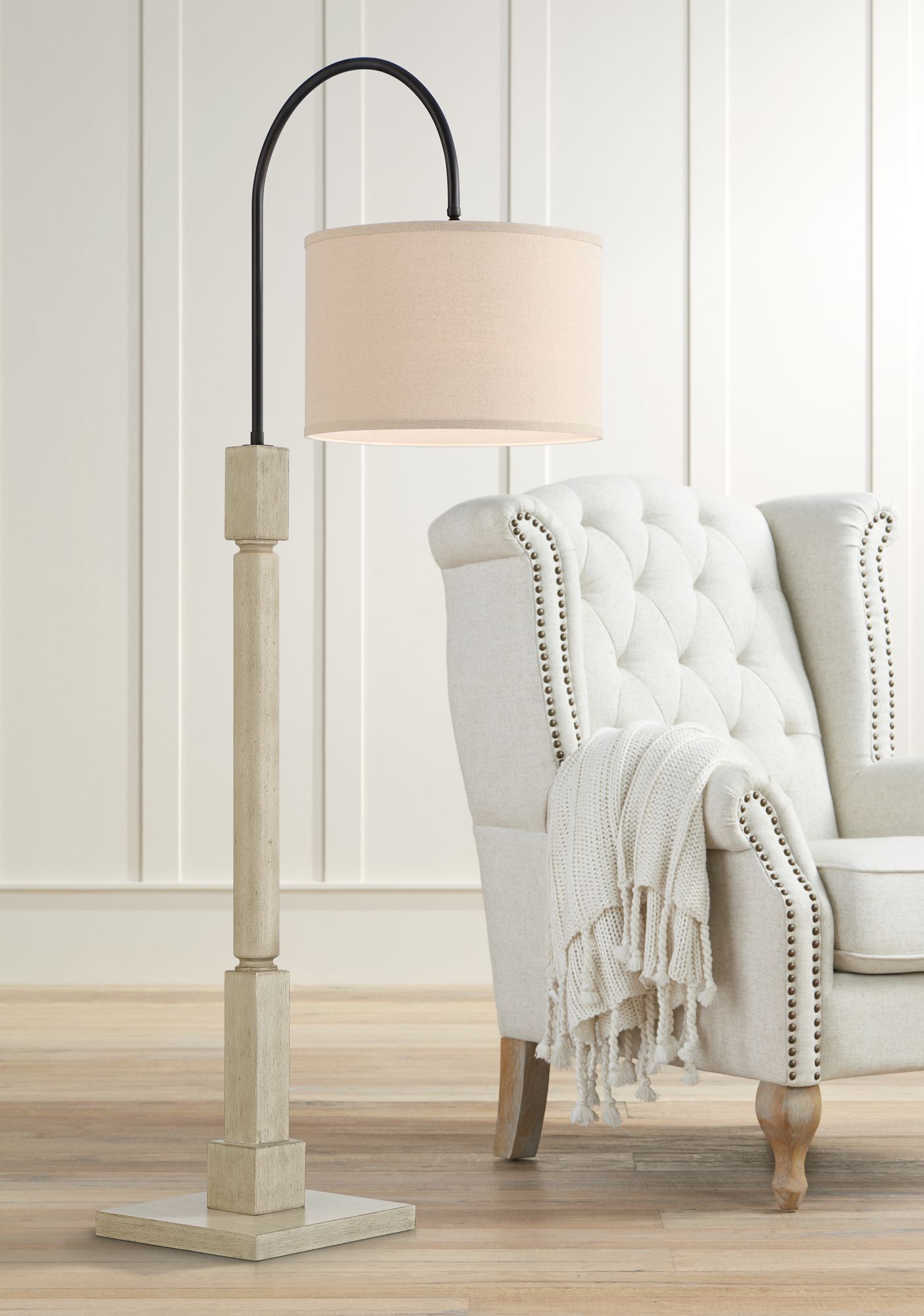 Barnes and Ivy Baluster 62" High Pickled Wood Chairside Arc Floor Lamp