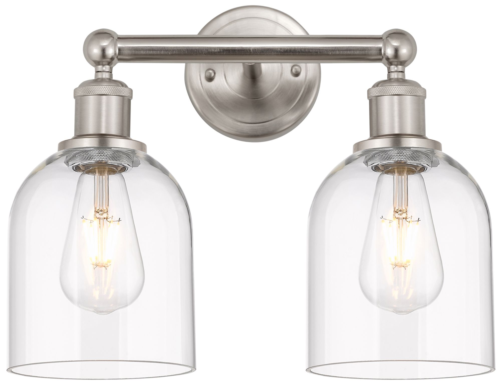 Edison Bella 14.5"W 2 Light Brushed Satin Nickel Bath Light w/ Clear S