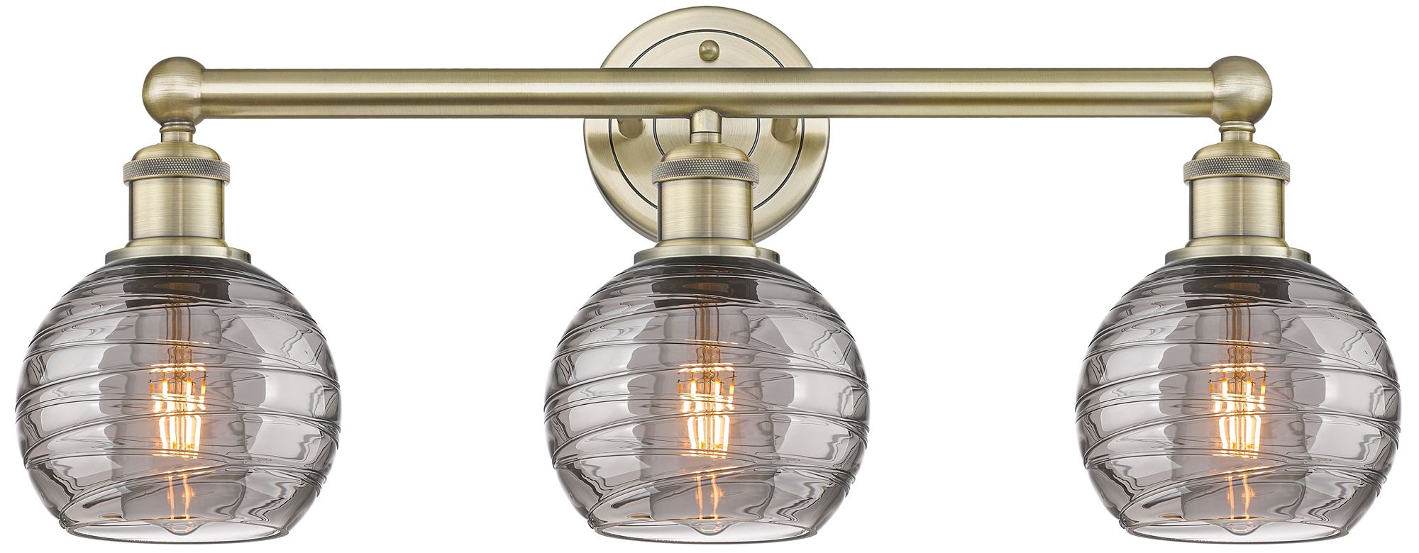 Edison Athens 23.88"W 3 Light Antique Brass Bath Light w/ Smoke Swirl