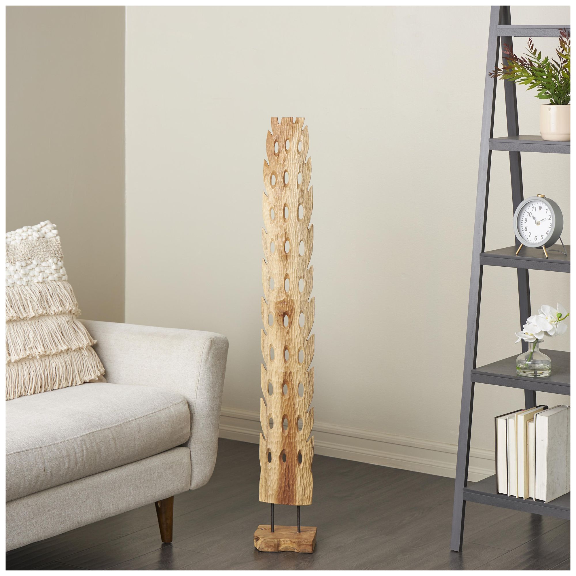 Brown Teak Wood Natural Sculpture, 7" x 6" x 49"