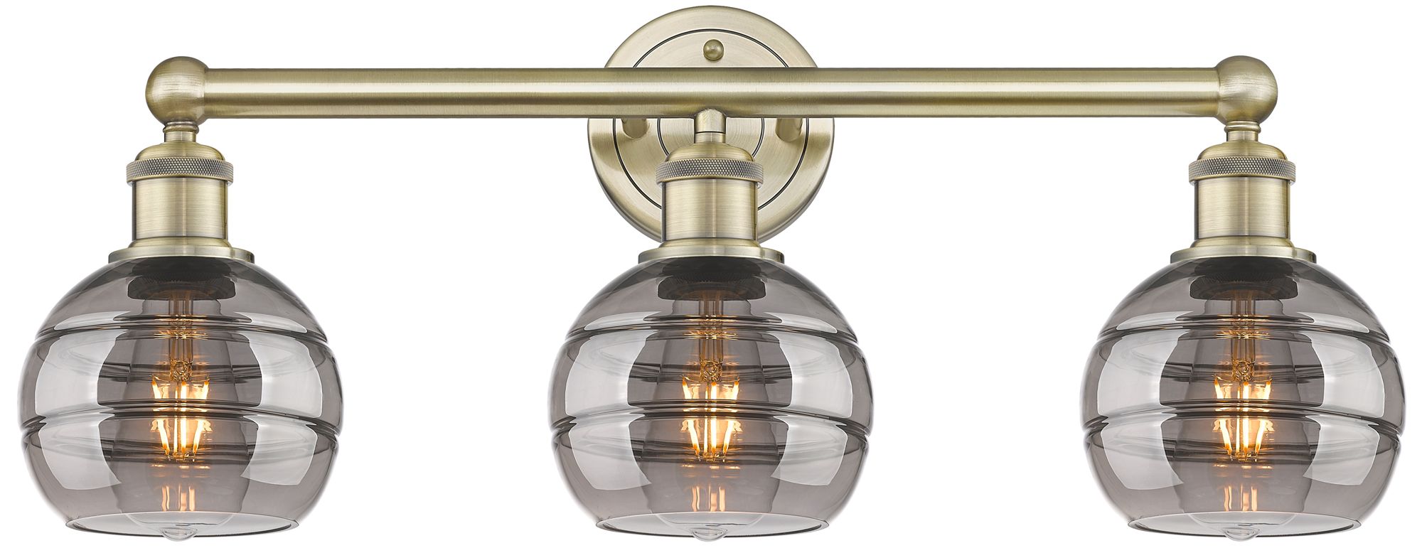 Edison Rochester 23.88"W 3 Light Antique Brass Bath Light w/ Smoke Sha