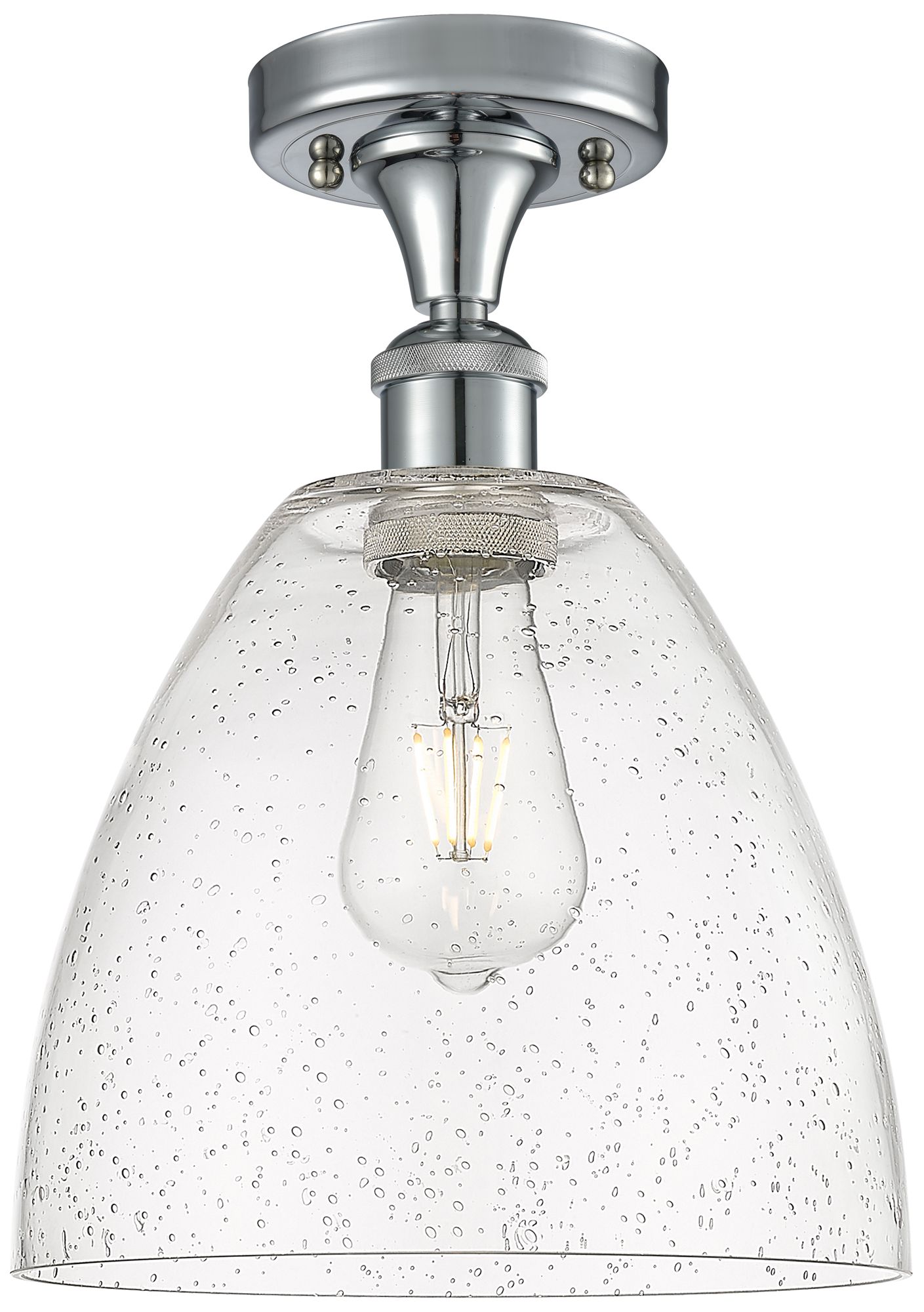 Bristol Glass 9" Semi-Flush Mount - Polished Chrome - Seedy Shade