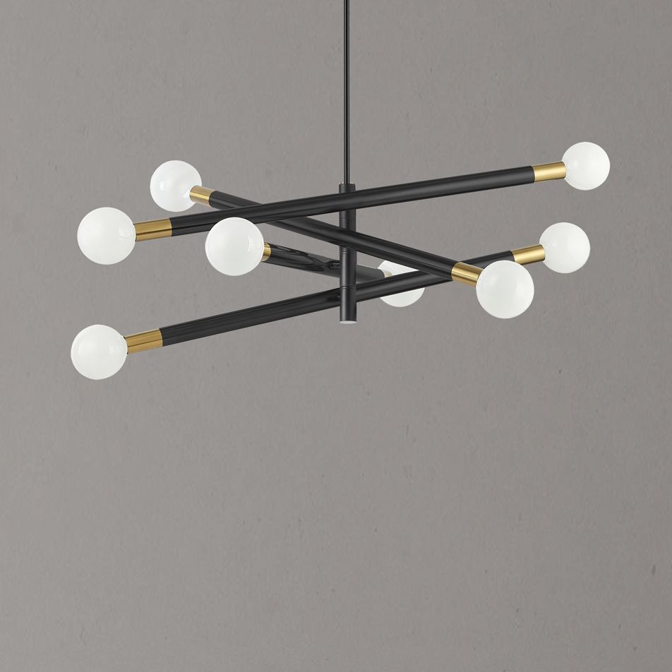 Wand 36" Wide 8 Globe Matte Black And Aged Brass Chandelier