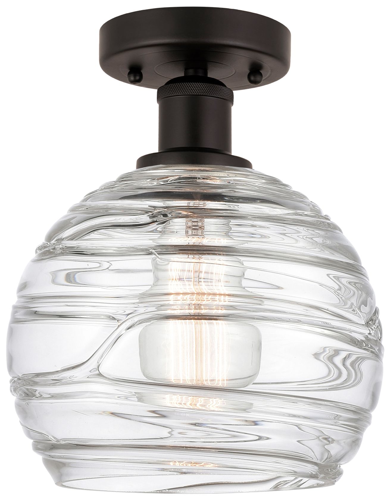 Edison Athens Deco Swirl 8" Semi-Flush - Oil Rubbed Bronze - Clear