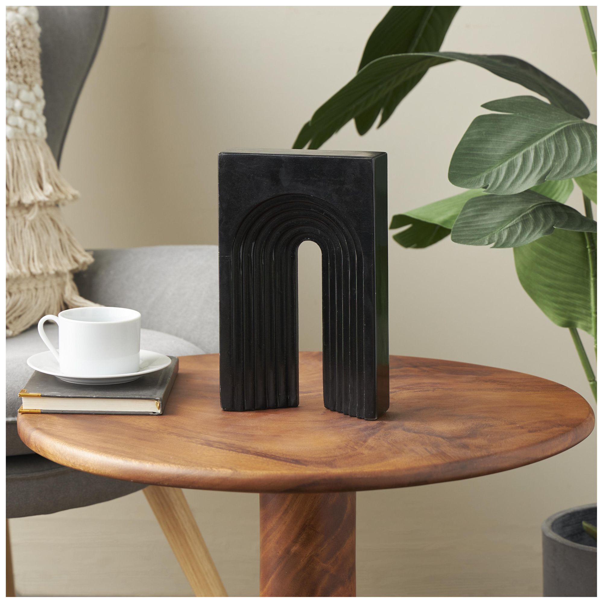 Black Marble Modern Sculpture, 7" x 2" x 11"