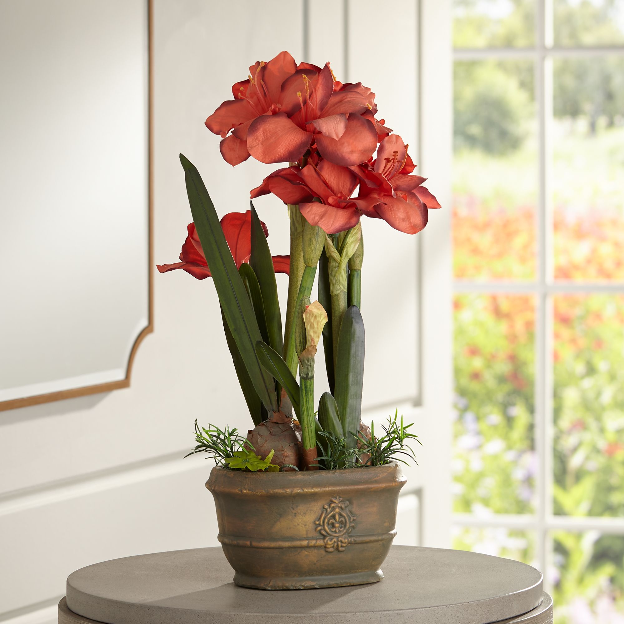 Rust Triple Amaryllis 25" High Faux Flowers in Oval Pot
