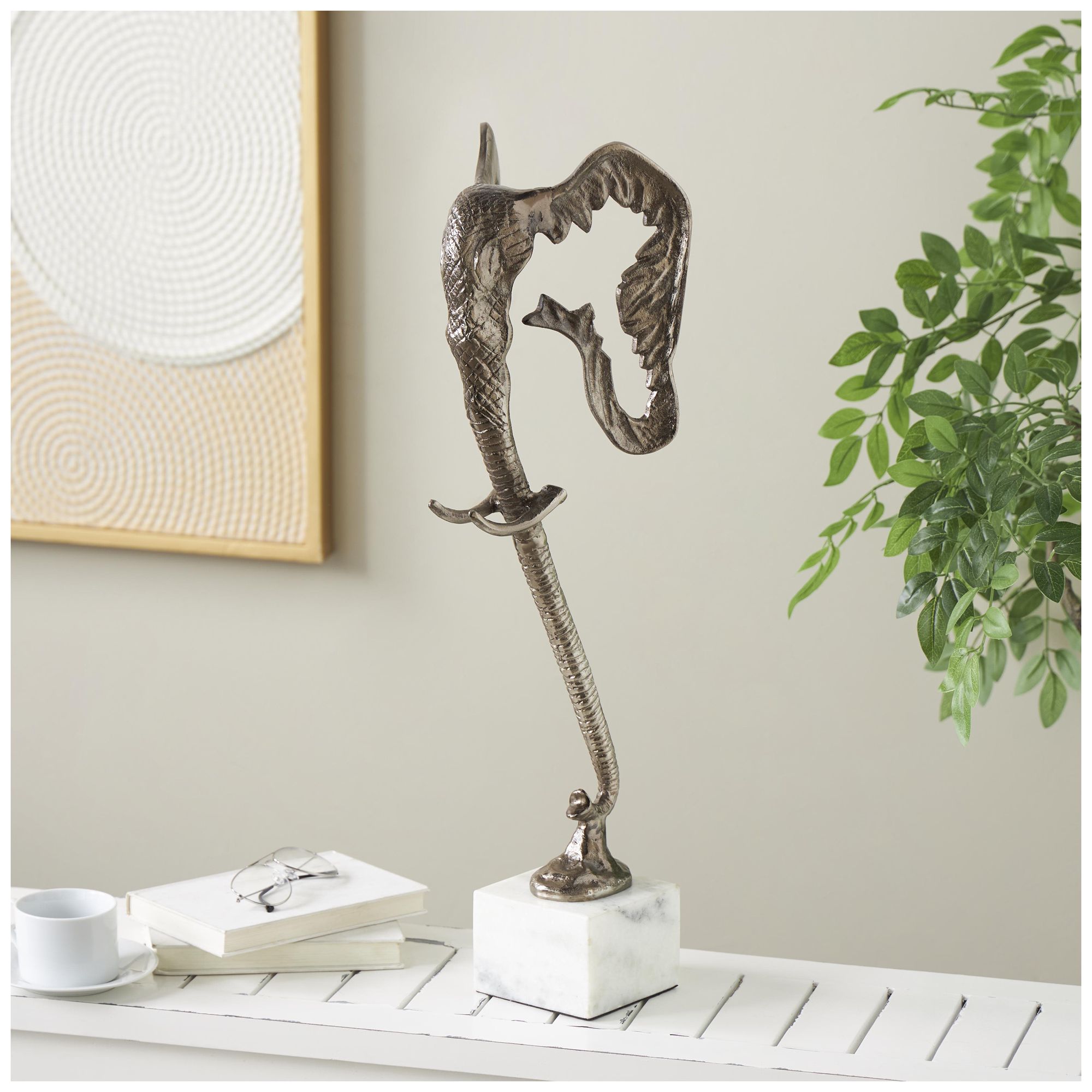 Silver Aluminum Metal Eclectic Sculpture, 8" x 8" x 26"