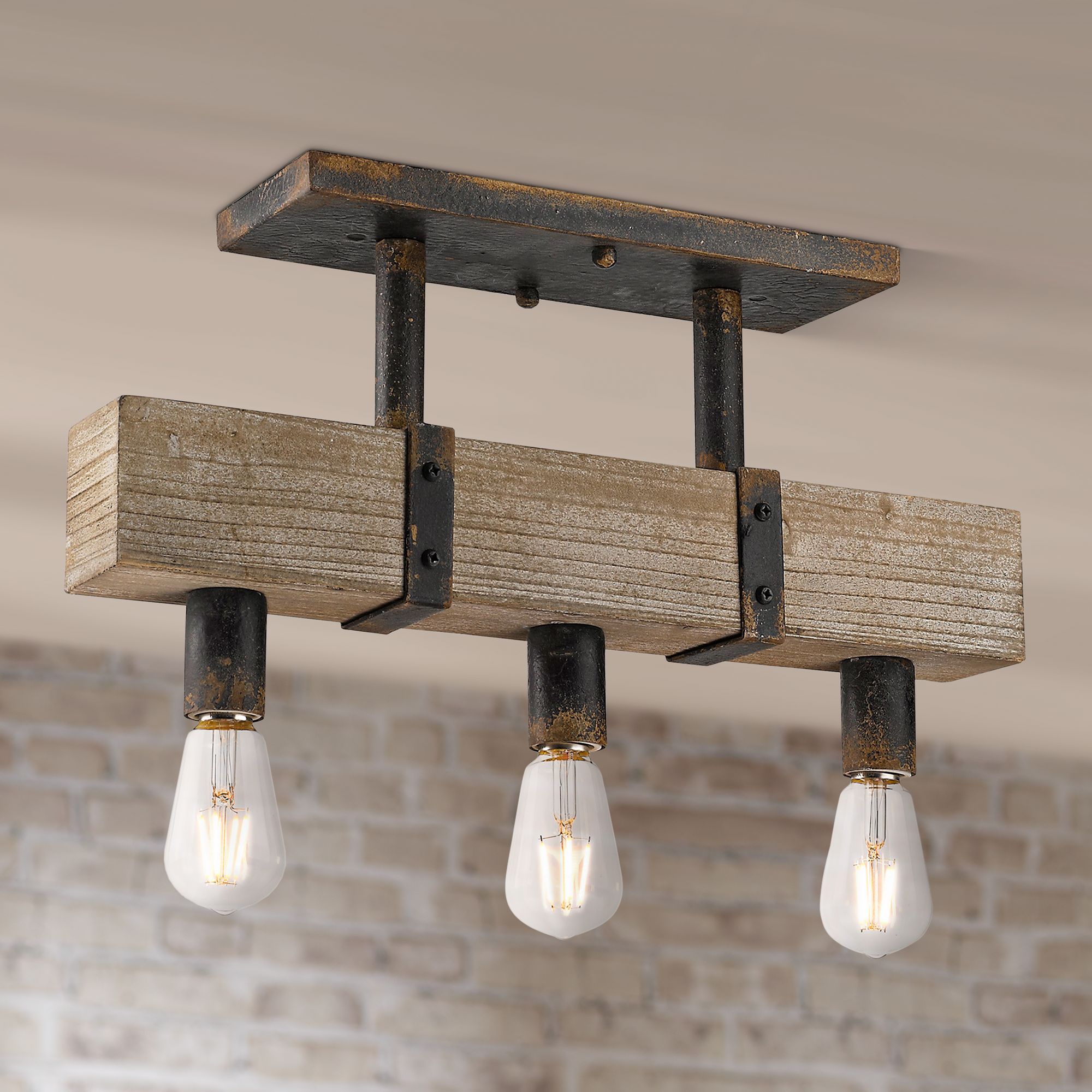Garrett 20 1/4"W Antique Black Iron 3-Light Ceiling Light