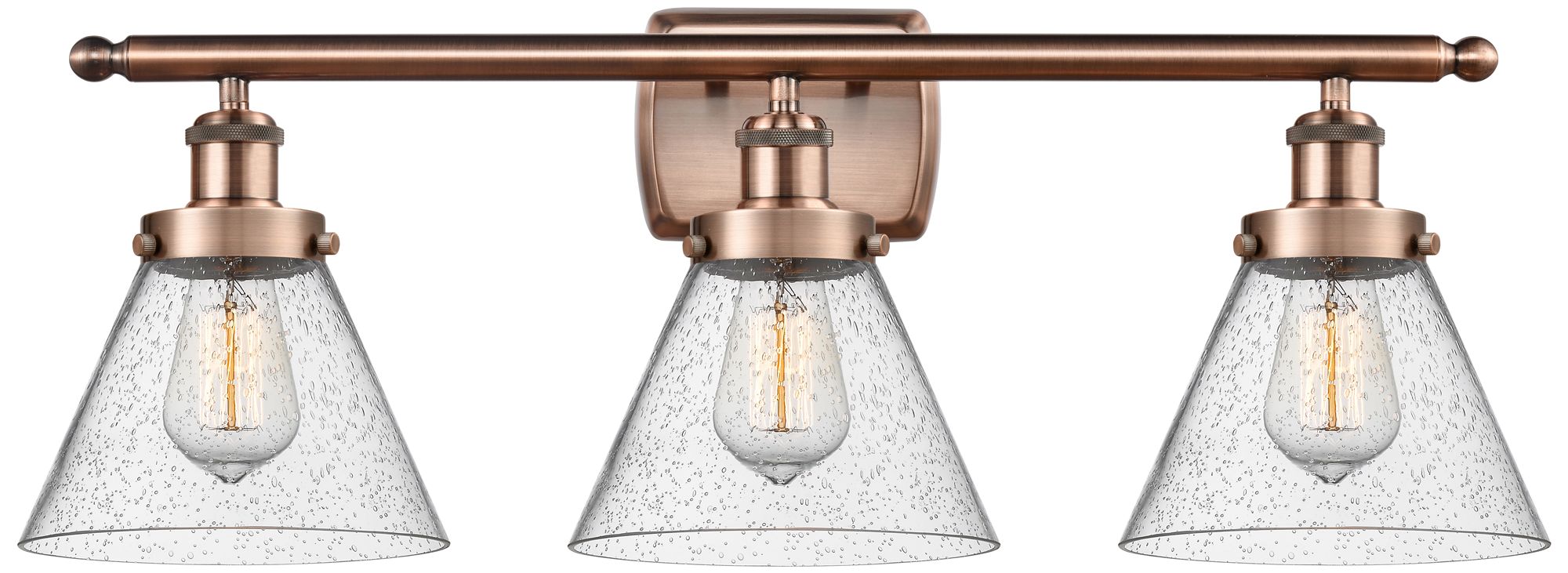 Ballston Urban Cone 28" 3 Light Copper LED Bath Light w/ Seedy Shade