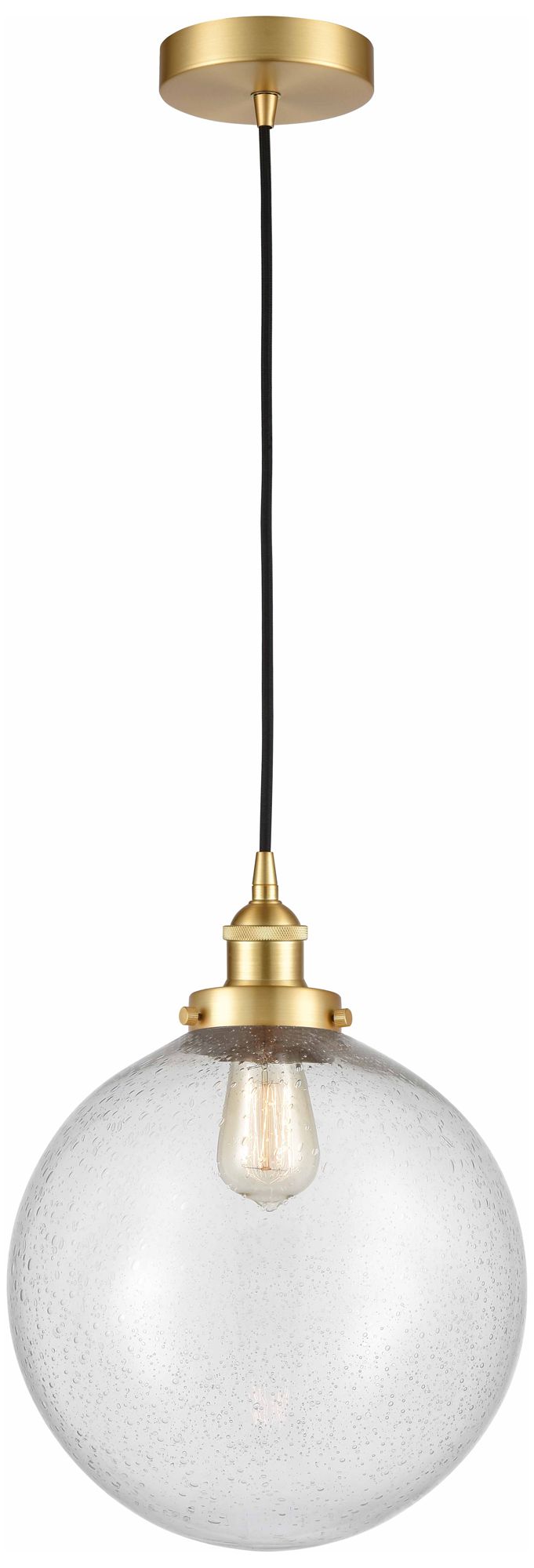 Beacon 12" Satin Gold Mini Pendant w/ Seedy Shade