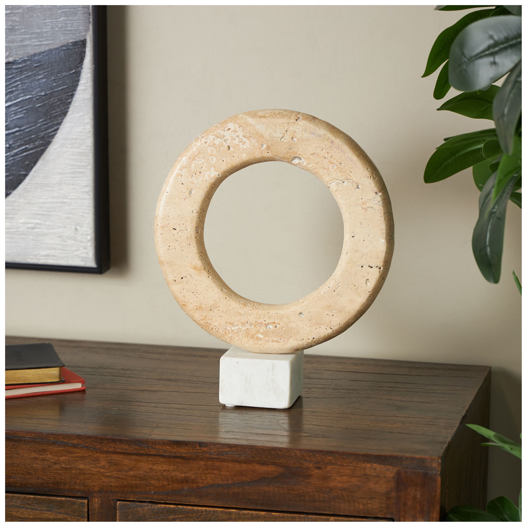 Cream Marble Modern Sculpture, 10" x 3" x 12"