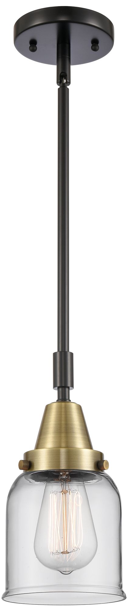 Caden Bell 5" Wide Black Brass Stem Hung Mini Pendant w/ Clear Shade