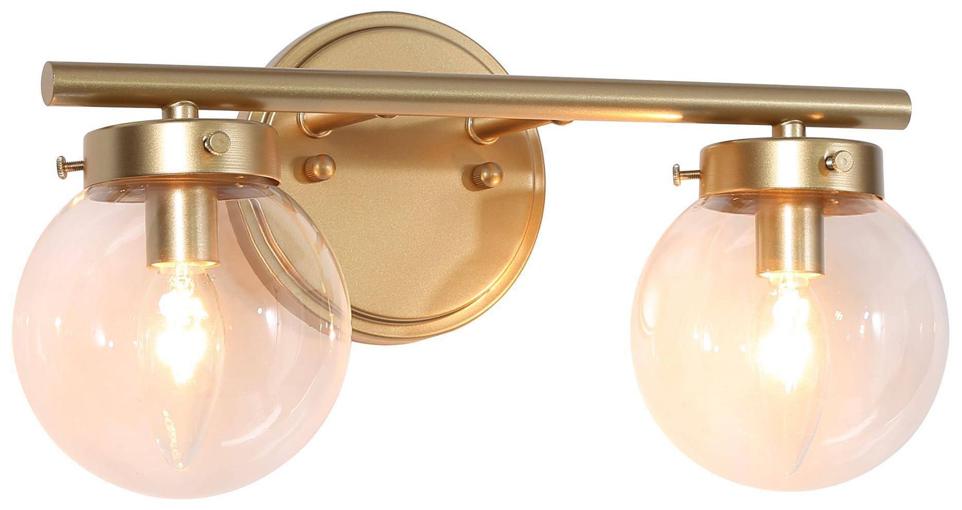 14.2" Wide Gold Globe-Shaped 2-Light Vanity Light with Clear Glass Sha