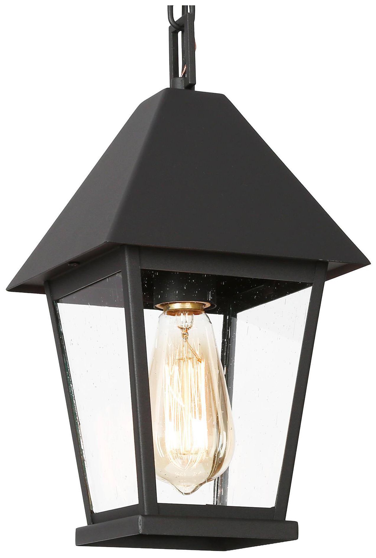 13" High 1-Light Black Seeded Glass Outdoor Pendant Light