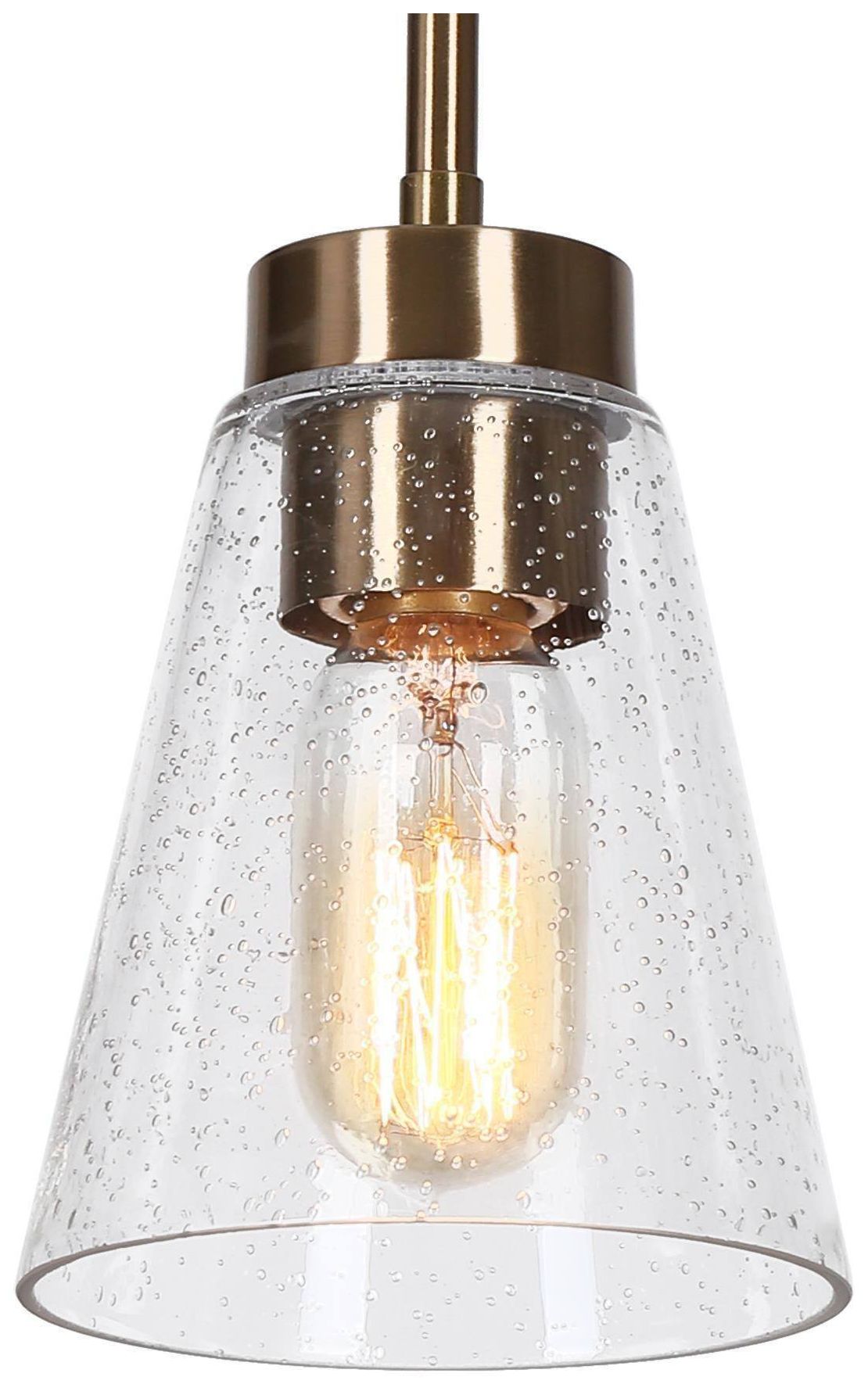 4.8" Wide Brass 1-Light Island Pendant Light with Seeded Glass Shade