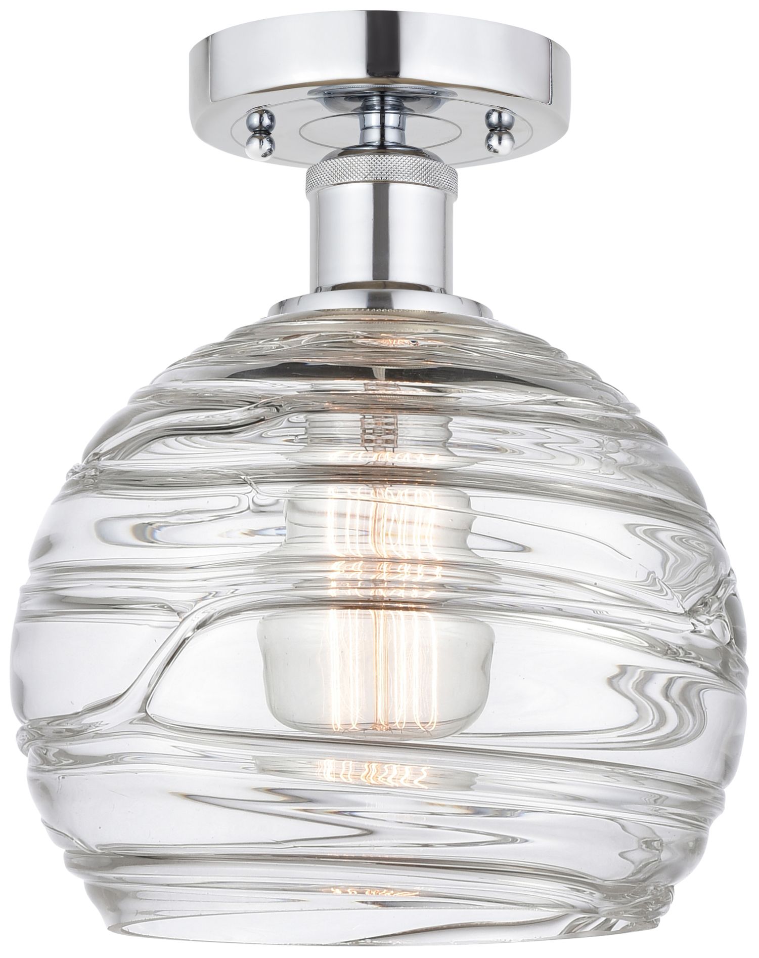 Edison Athens Deco Swirl 8" Semi-Flush Mount - Chrome - Clear Deco Sw