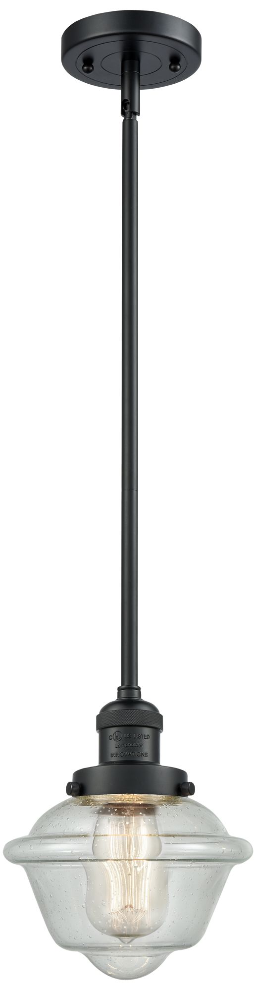 Franklin Oxford 8" Matte Black Stemmed Mini Pendant w/ Seedy Shade