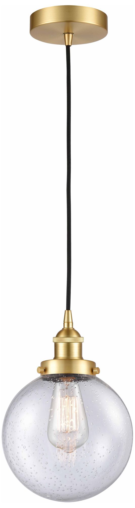 Beacon 8" Satin Gold Mini Pendant w/ Seedy Shade