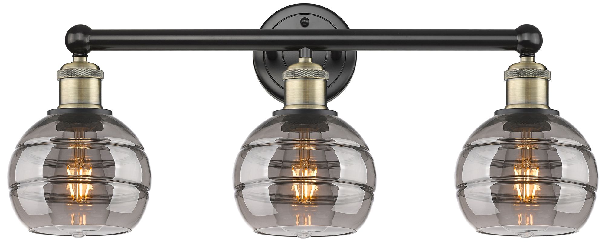 Edison Rochester 23.88"W 3 Light Black Brass Bath Light w/ Smoke Shade