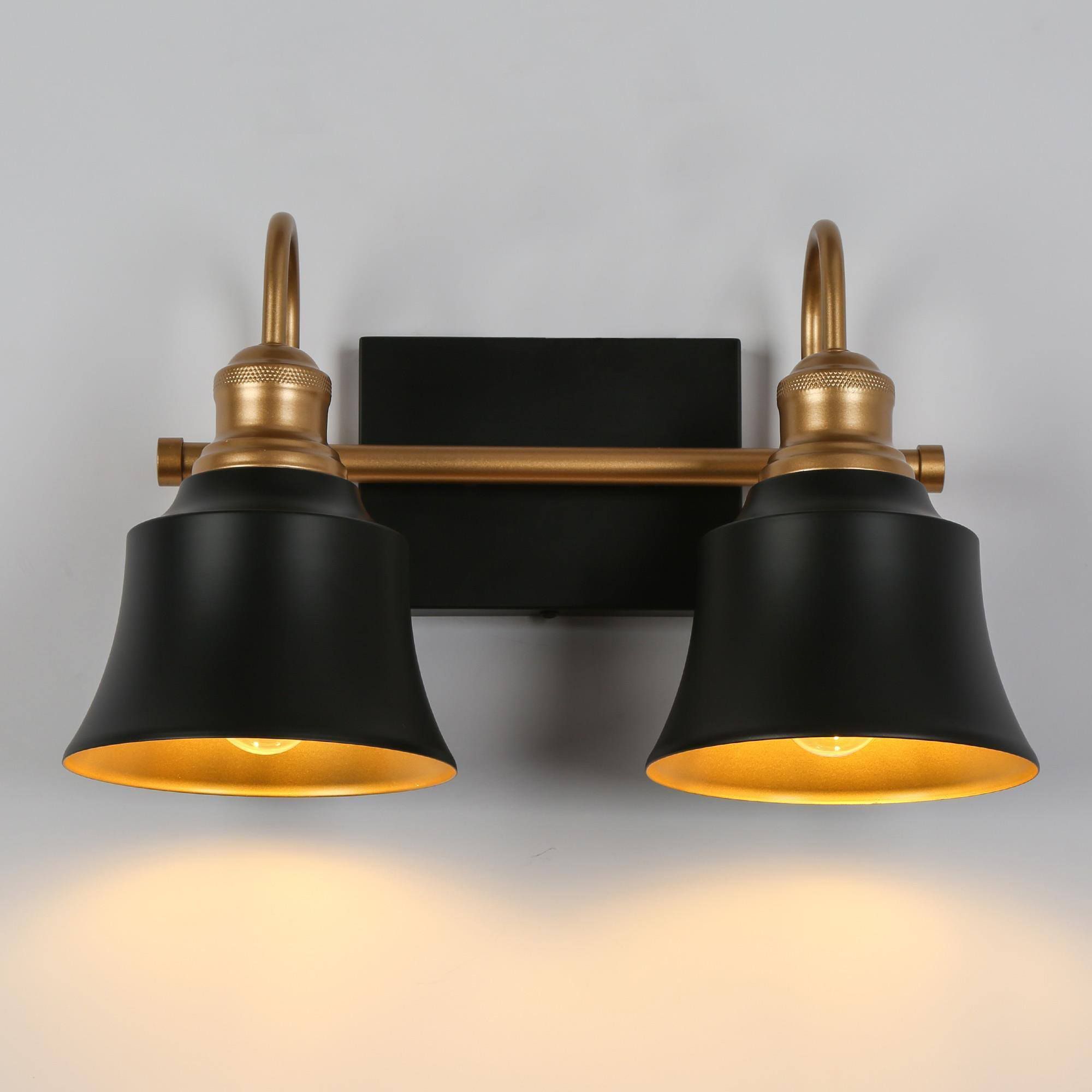 14.6" Wide Black and Gold 2-Light Vanity Light with Metal Shades