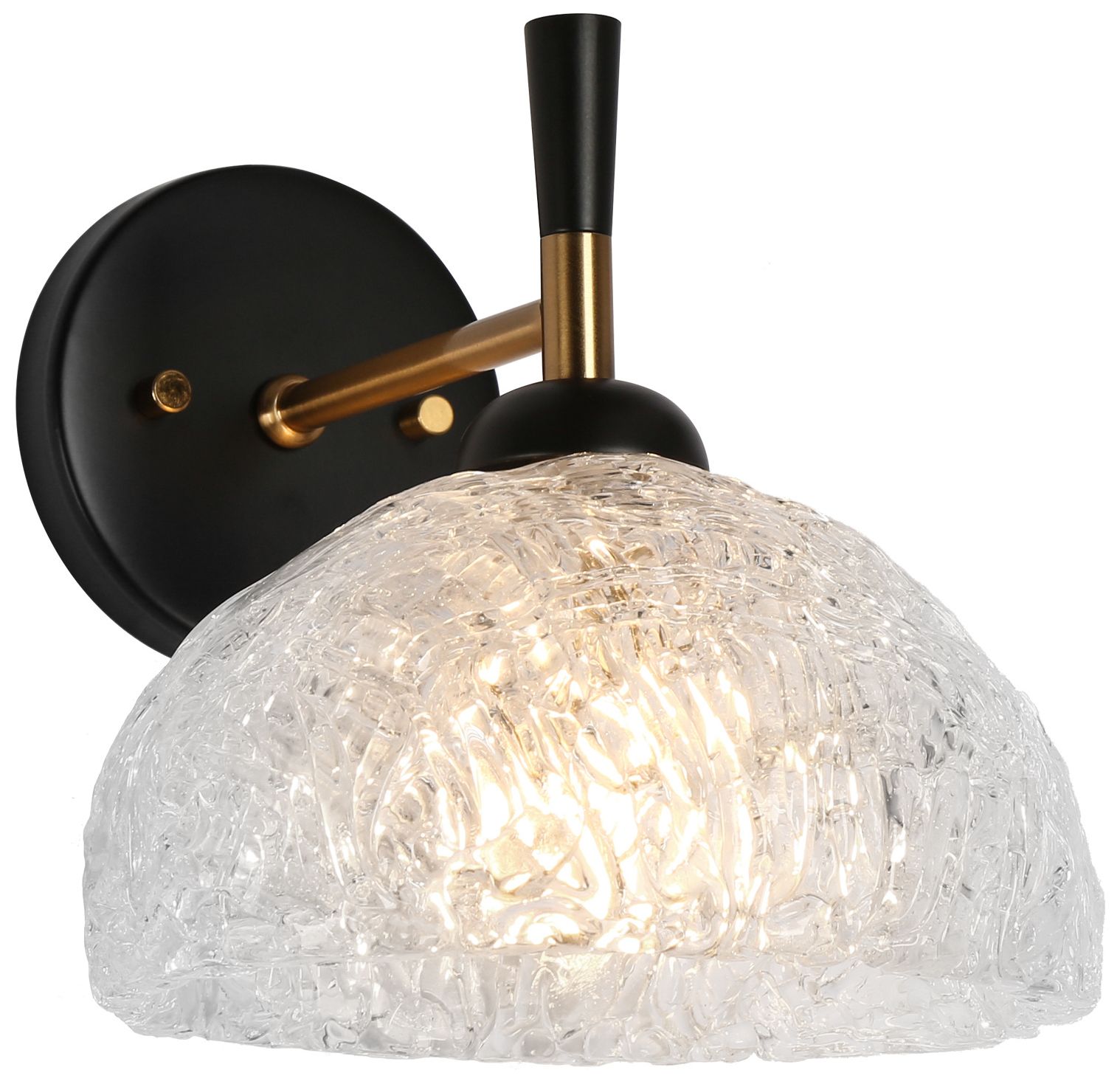 9.1" High Black Brass 1-Light Vanity Light with Crystal Shade
