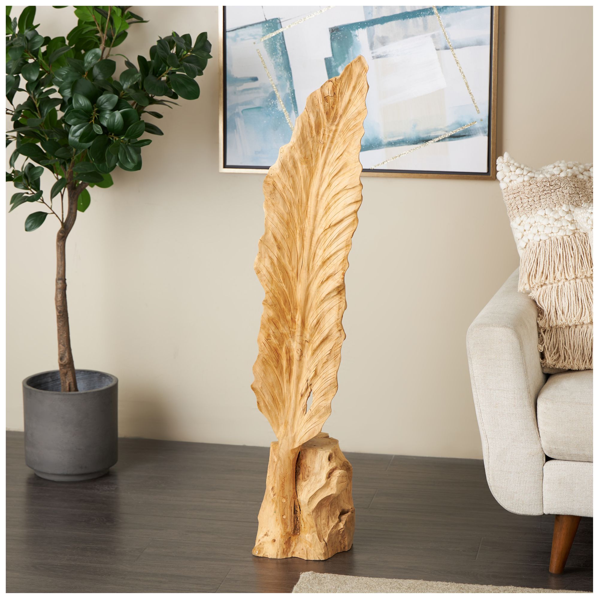 Brown Teak Wood Natural Sculpture, 9" x 10" x 46"