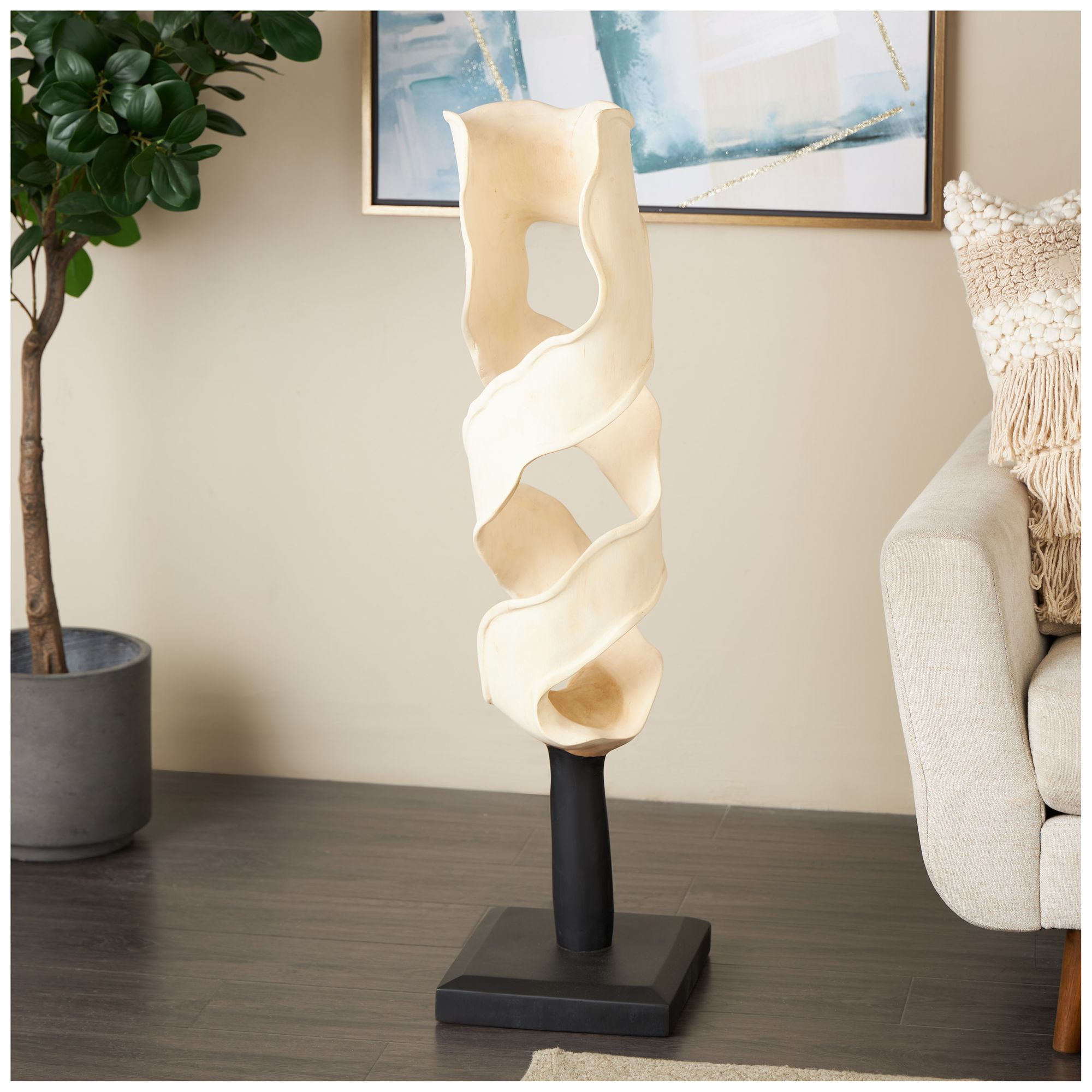Cream Teak Wood Traditional Sculpture, 12" x 11" x 40"