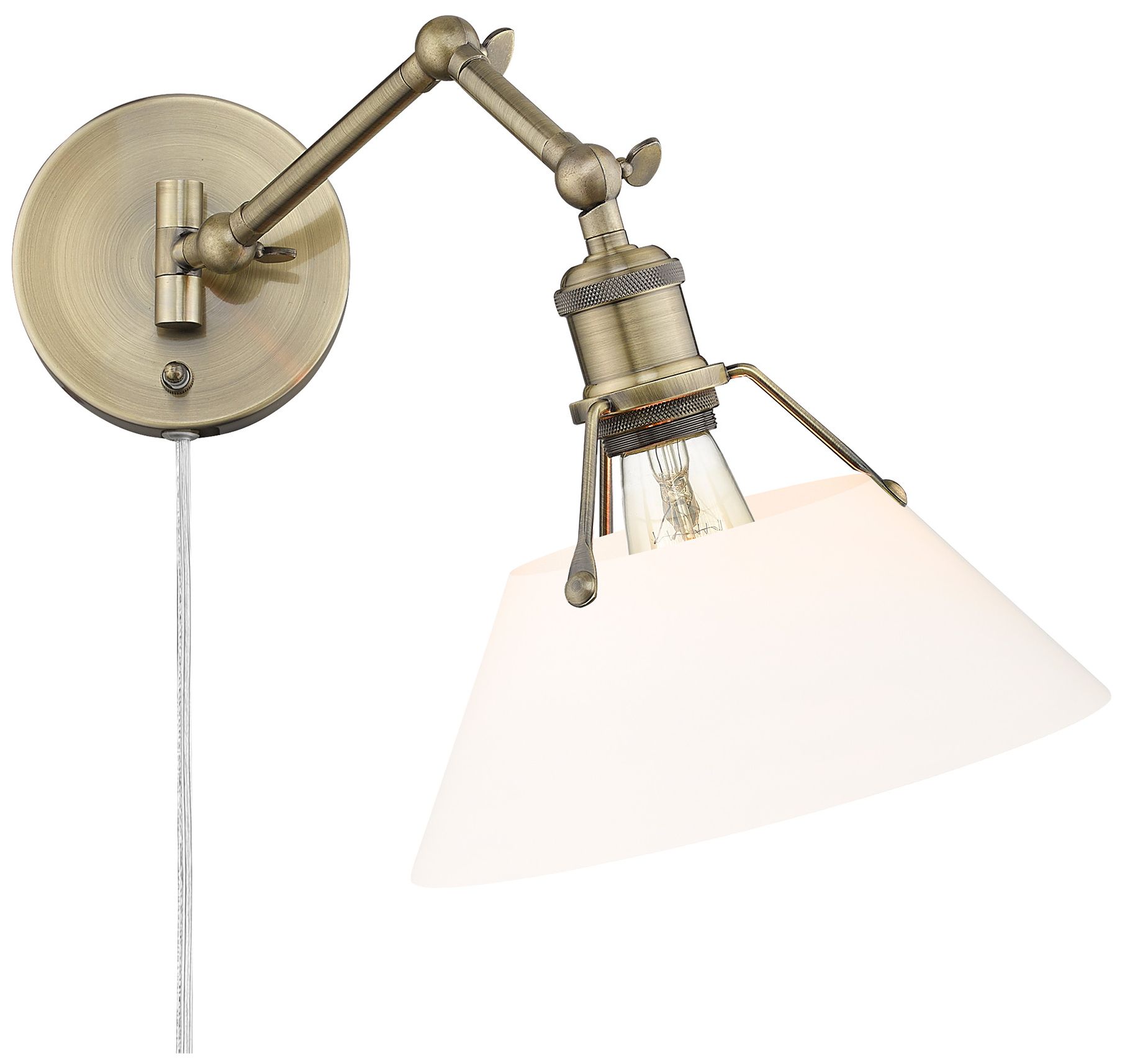 Orwell 10" Wide Swing Arm in Aged Brass with Opal Glass