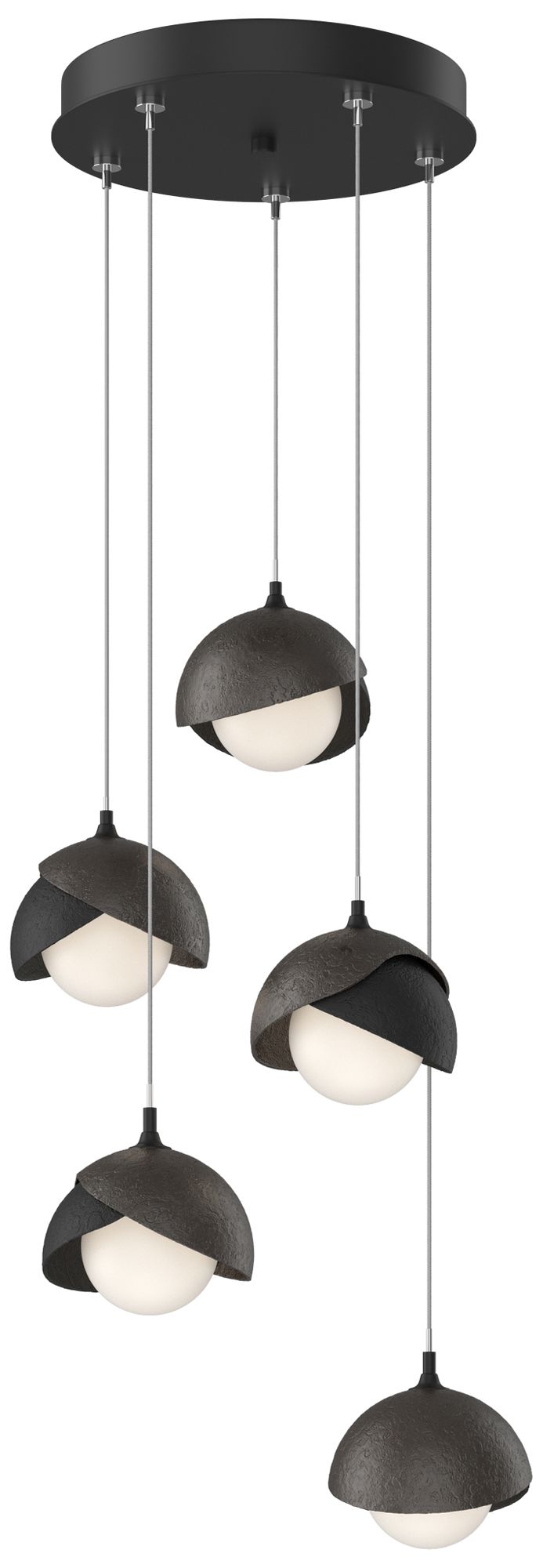Brooklyn 16"W 5-Light Oiled Bronze Accented Black Double Shade Pendant