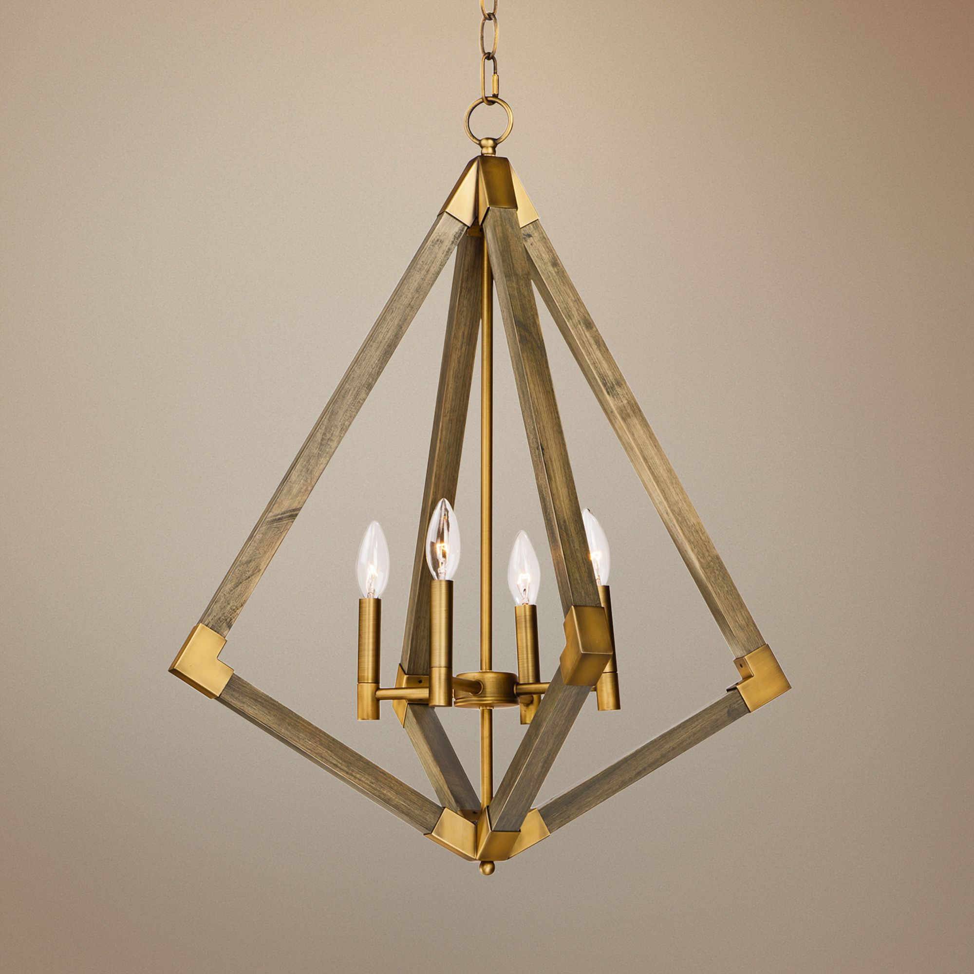 Maxim Vector 24" Oak and Brass Modern Geometric Pendant Light