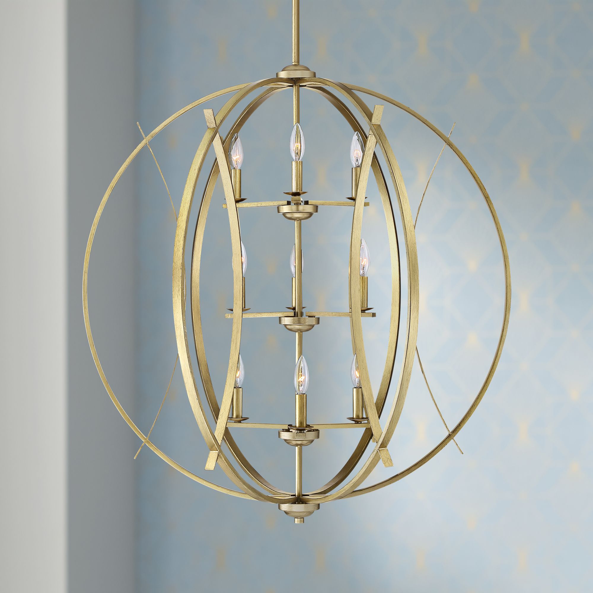 Possini Euro Spherical 34" Wide Antique Gold 9-Light Pendant