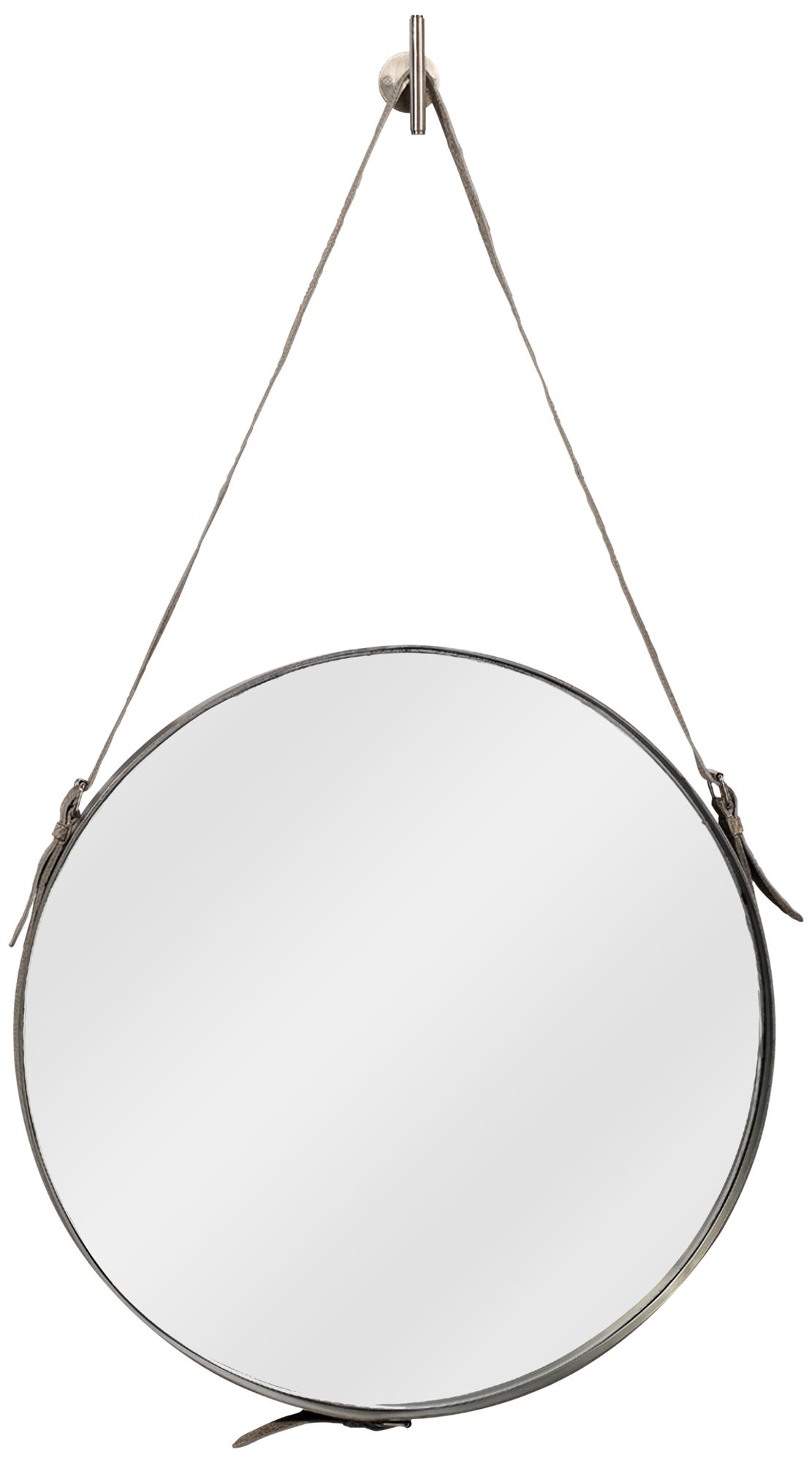 Antique Silver with Gray Hide Strap 26" x 43" Wall Mirror