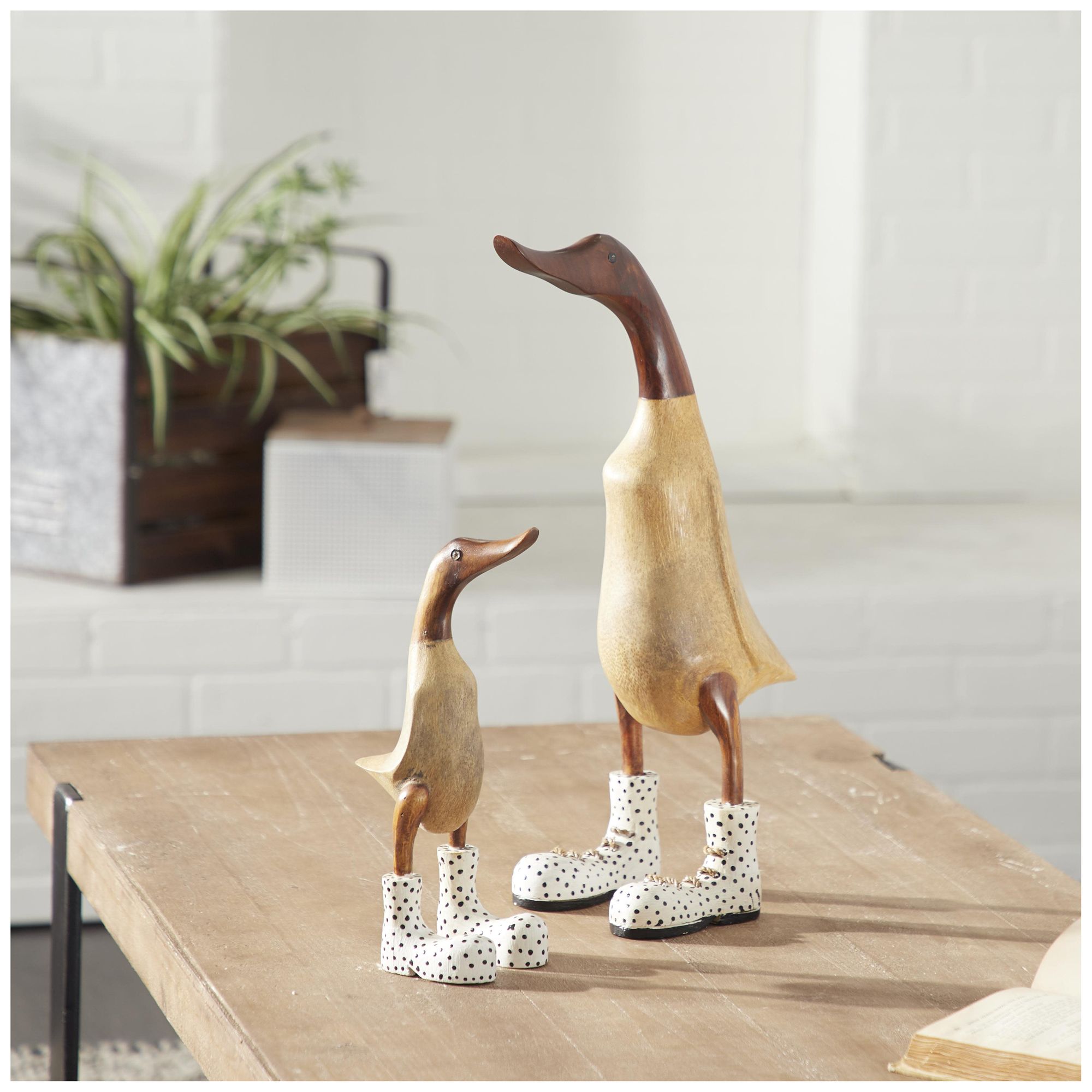 Brown Bamboo Wood Farmhouse Sculpture, S/2 17", 11"H