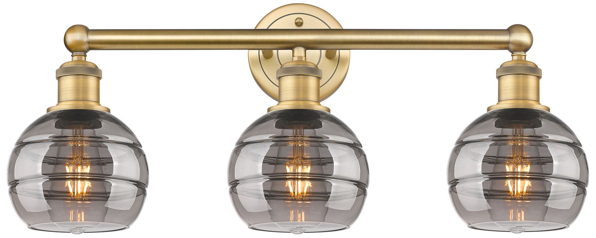 Edison Rochester 23.88"W 3 Light Brushed Brass Bath Light w/ Smoke Sha