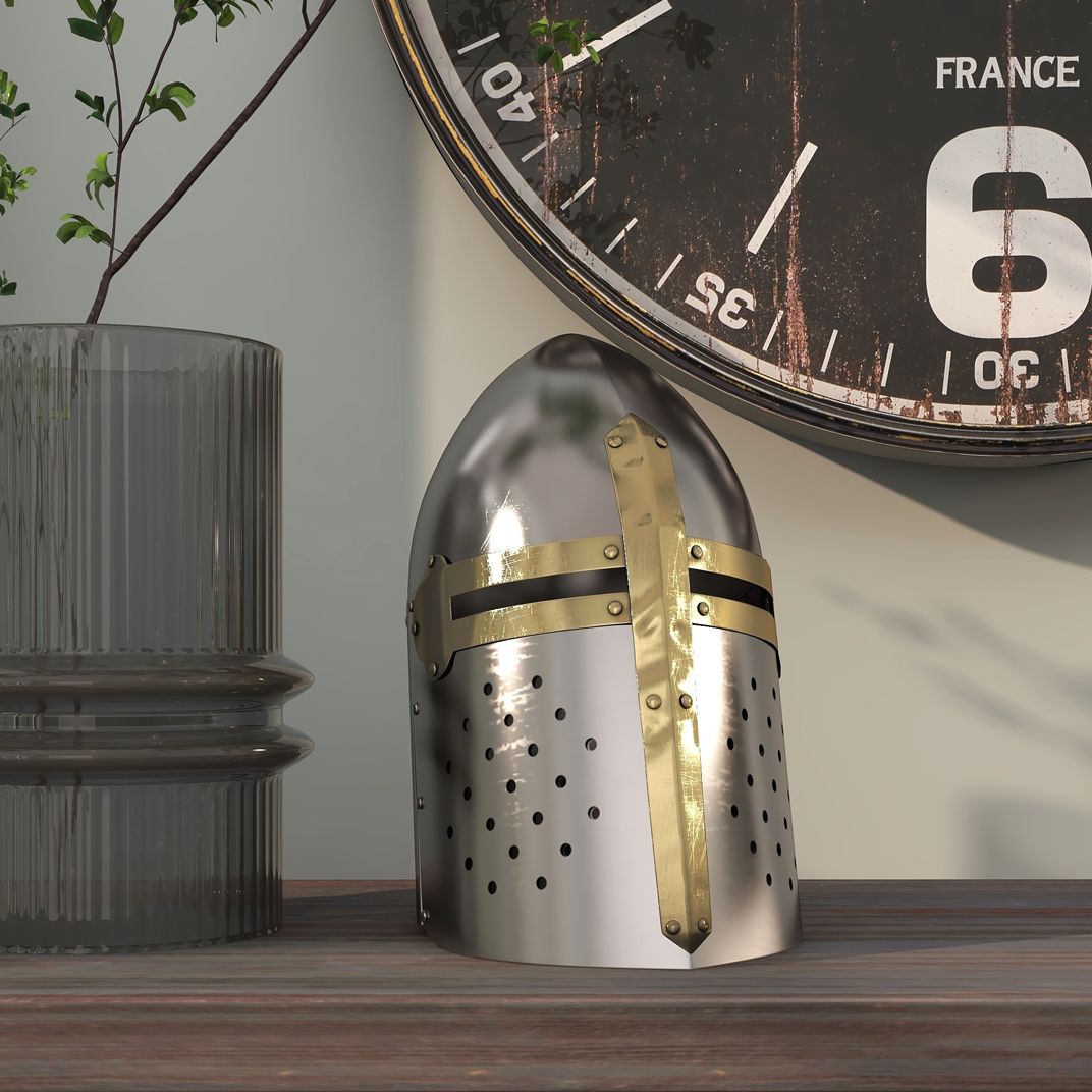Silver Metal Vintage Helmet, 9" x 9" x 13"