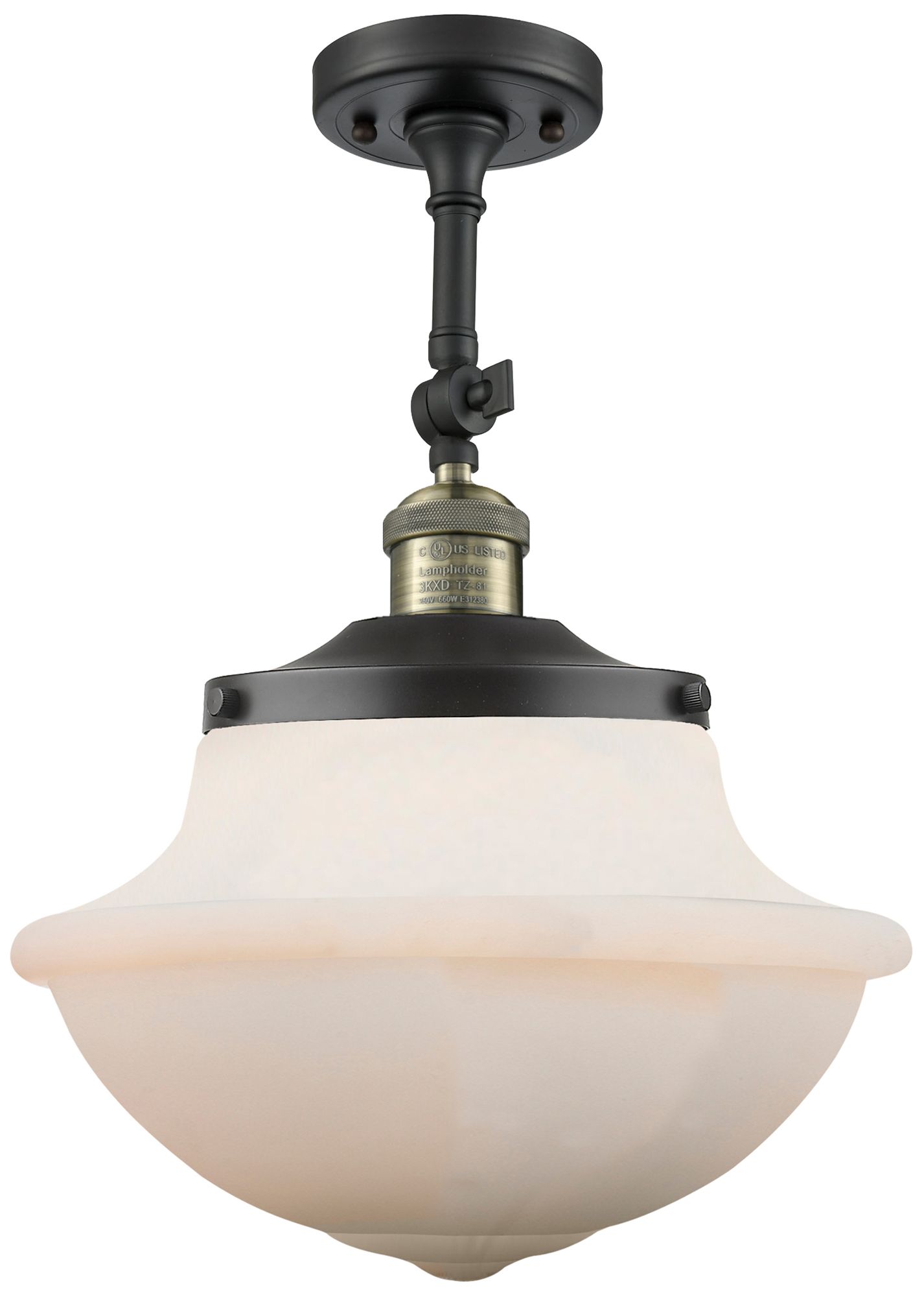 Franklin Oxford 11.75"W Black Brass Adjustable Semi.Flush w/ White Sha