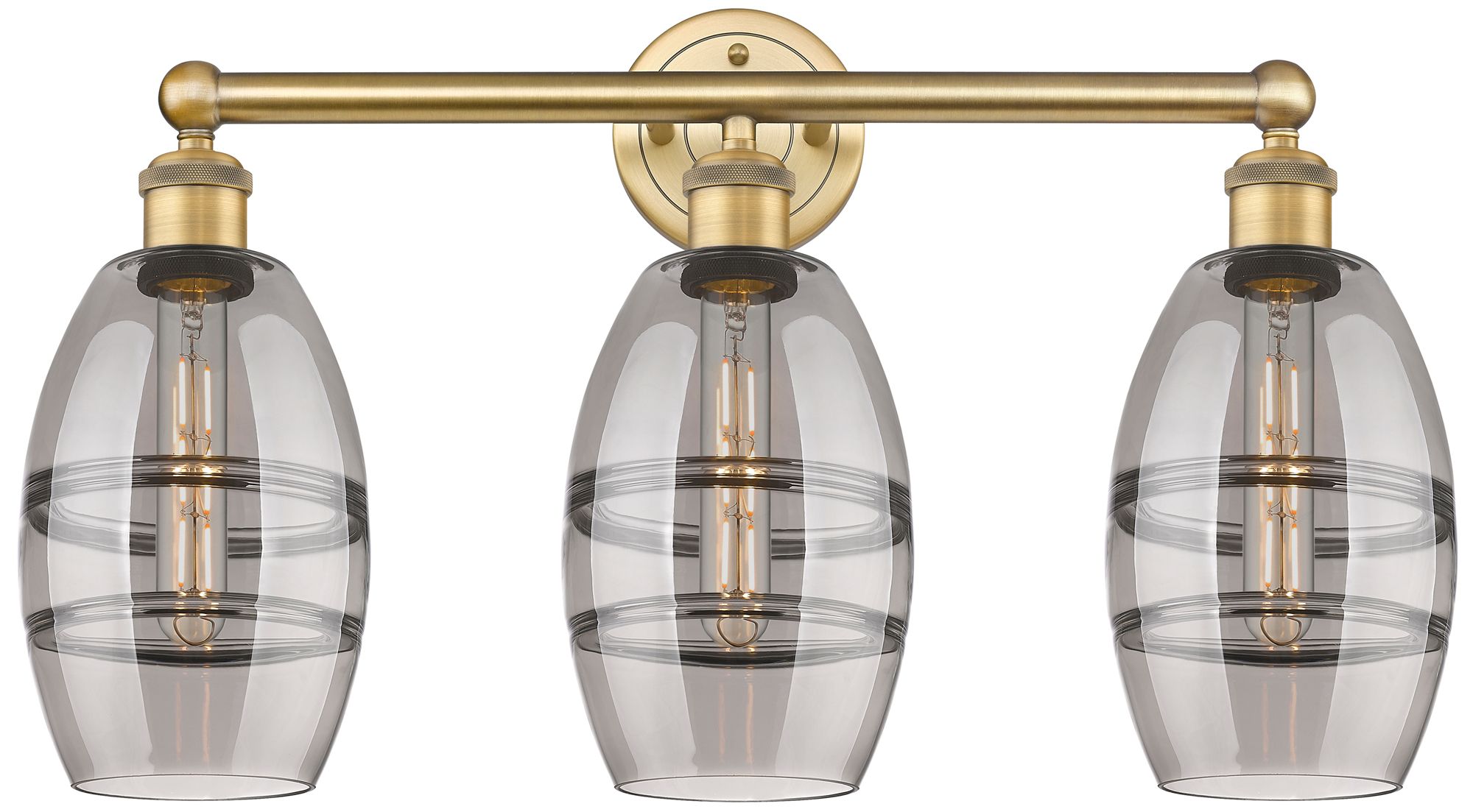 Edison Vaz 23.88"W 3 Light Brushed Brass Bath Light w/ Light Smoke Sha