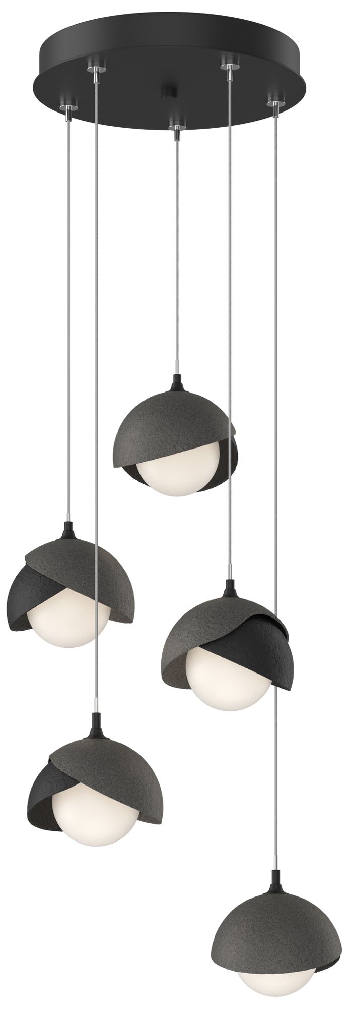 Brooklyn 16"W 5-Light Iron Accented Black Standard Double Shade Pendan