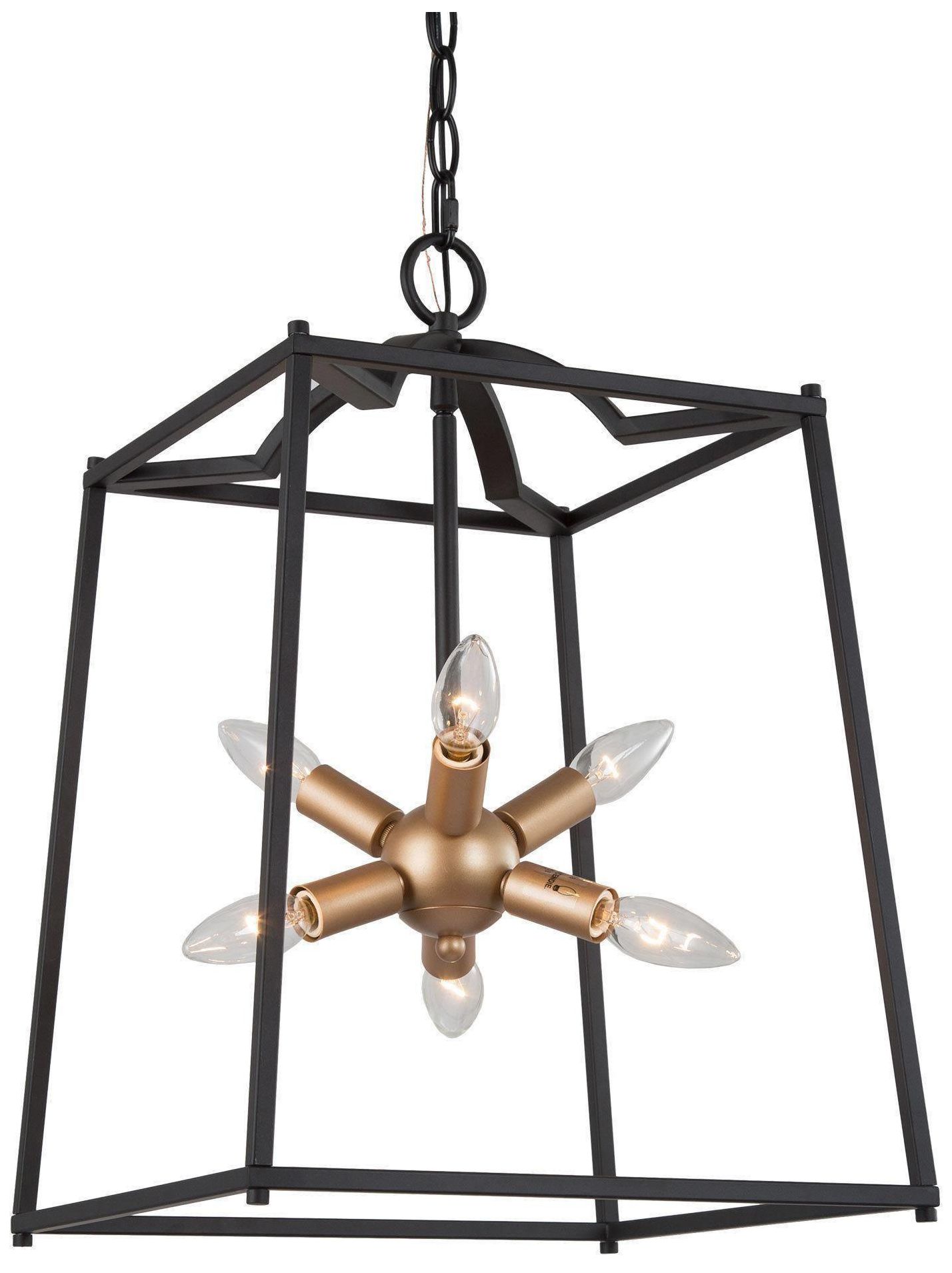 14" Wide 6-Light Black Gold Lantern Square Chandelier
