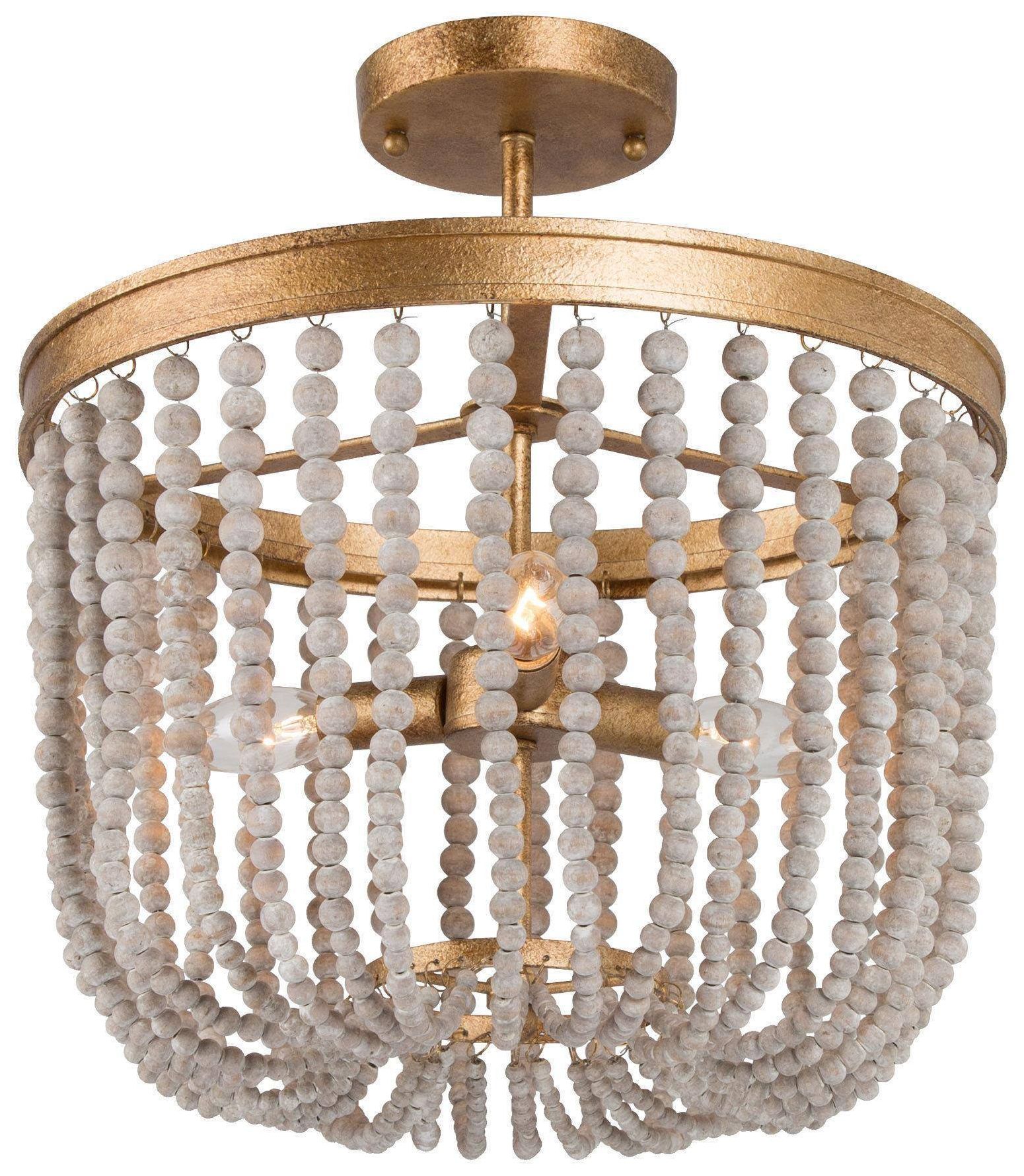 14" Wide 4-Light Brass Wood Beaded Drum Ceiling Light