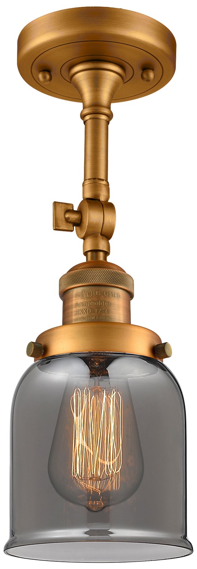 Franklin Bell 5"W Brushed Brass Adjustable Semi.Flush Mount w/ Smoke S
