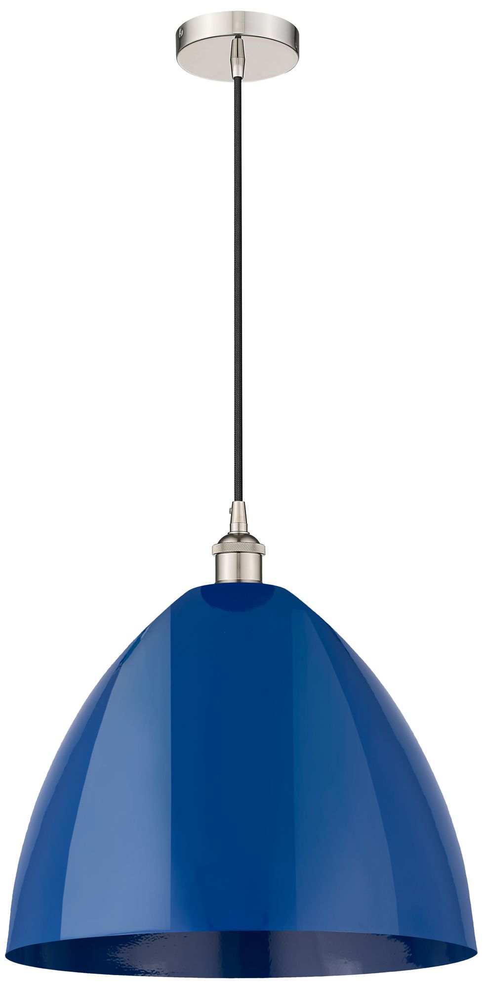 Plymouth Dome 16" Wide Polished Nickel Corded Mini Pendant w/ Blue Sha