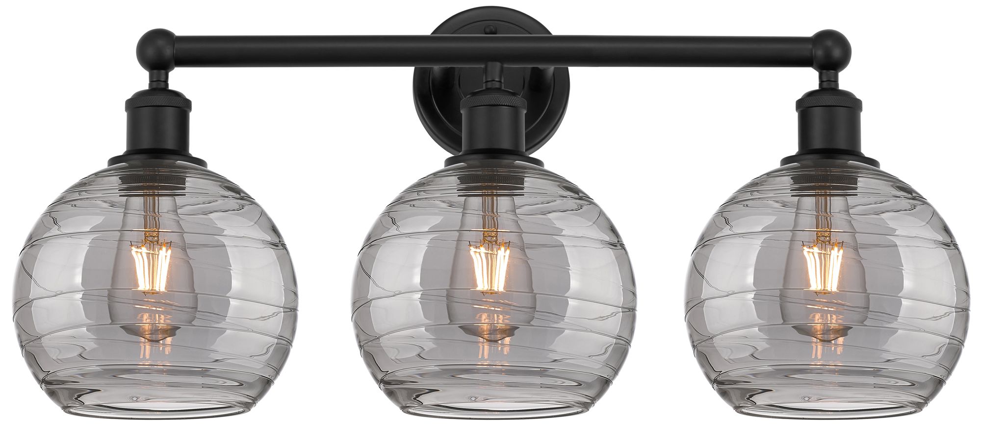Edison Athens 26"W 3 Light Matte Black Bath Light w/ Smoke Swirl Shade