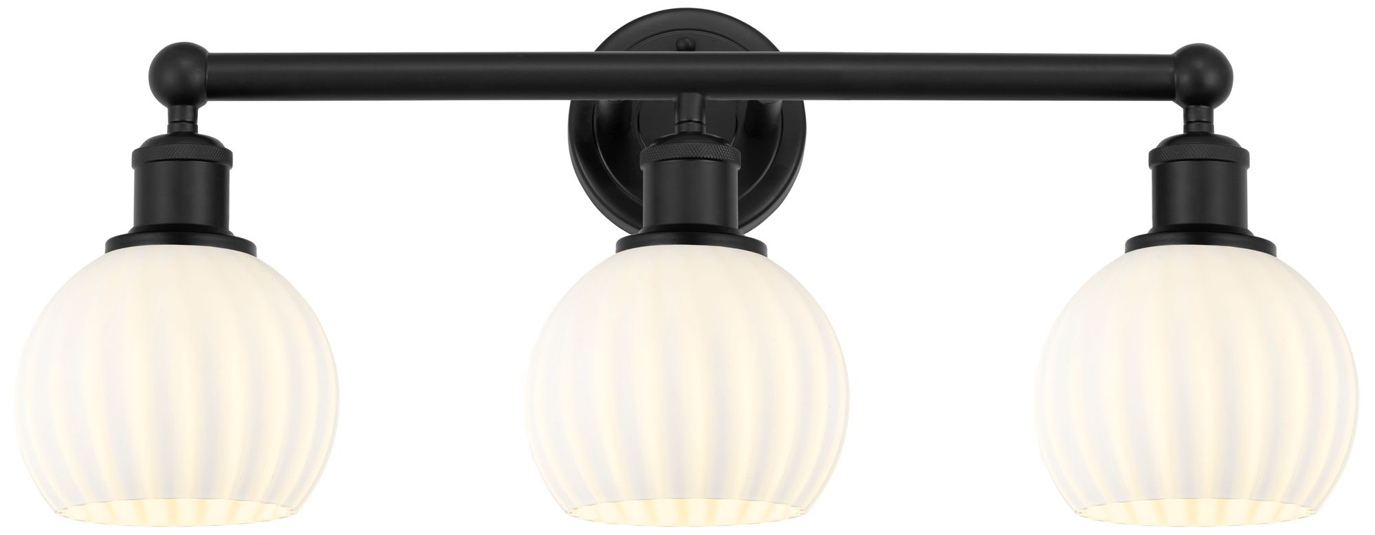 Edison 24" Wide 3 Light Matte Black Bath Light With White Venetian Sha