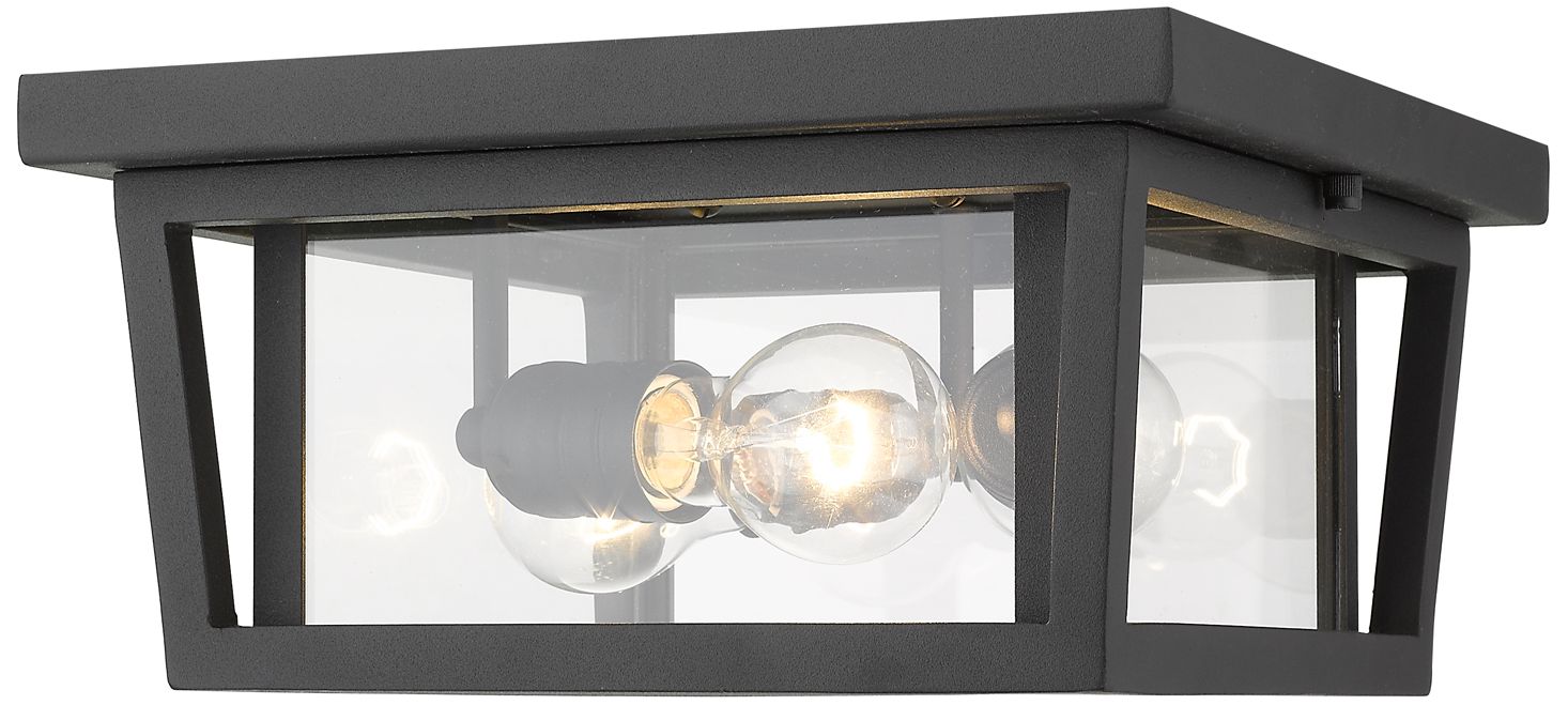 Z-Lite Seoul 12" Black and Clear Glass 3-Light Outdoor Ceiling Light