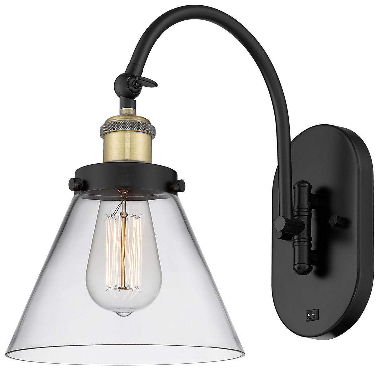 Franklin Restoration Cone 8" LED Sconce - Black Brass Finish - Clear S