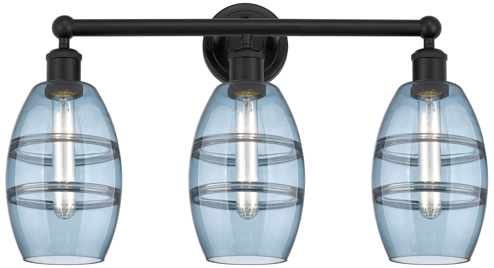 Edison Vaz 23.88"W 3 Light Matte Black Bath Light w/ Princess Blue Sha
