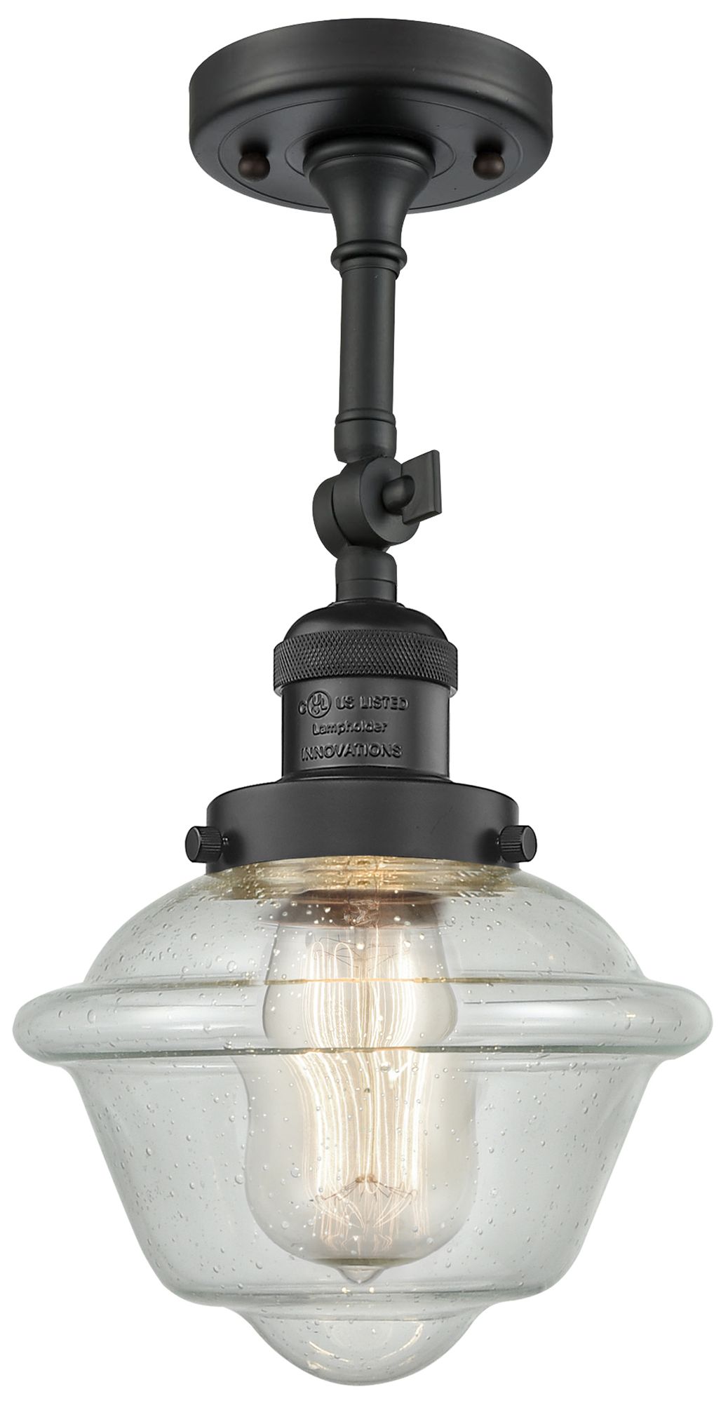 Franklin Oxford 7.5"W Matte Black Adjustable Semi.Flush w/ Seedy Shade