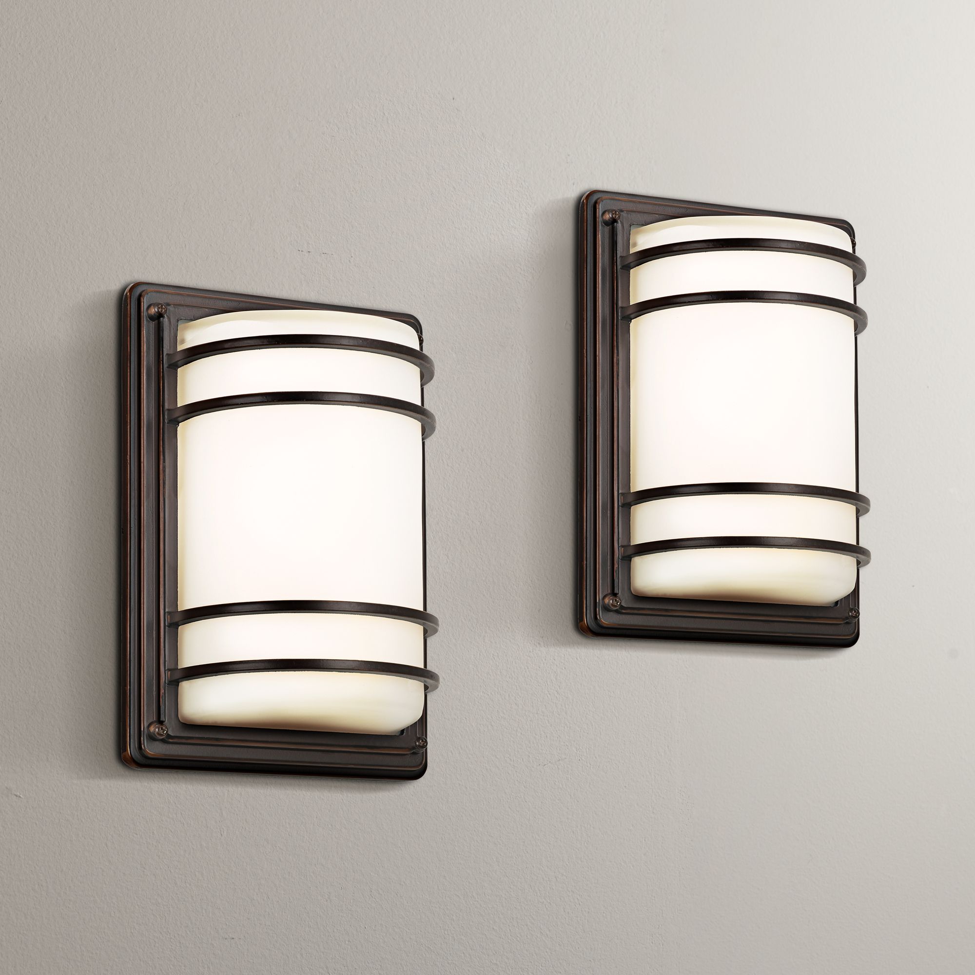 Habitat 11" High Bronze and Opal Glass Wall Sconce Set of 2