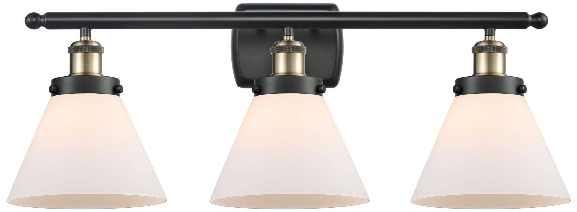 Ballston Urban Cone 28" 3 Light Black Brass Bath Light w/ White Shade